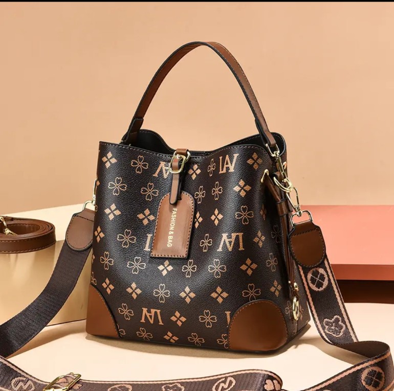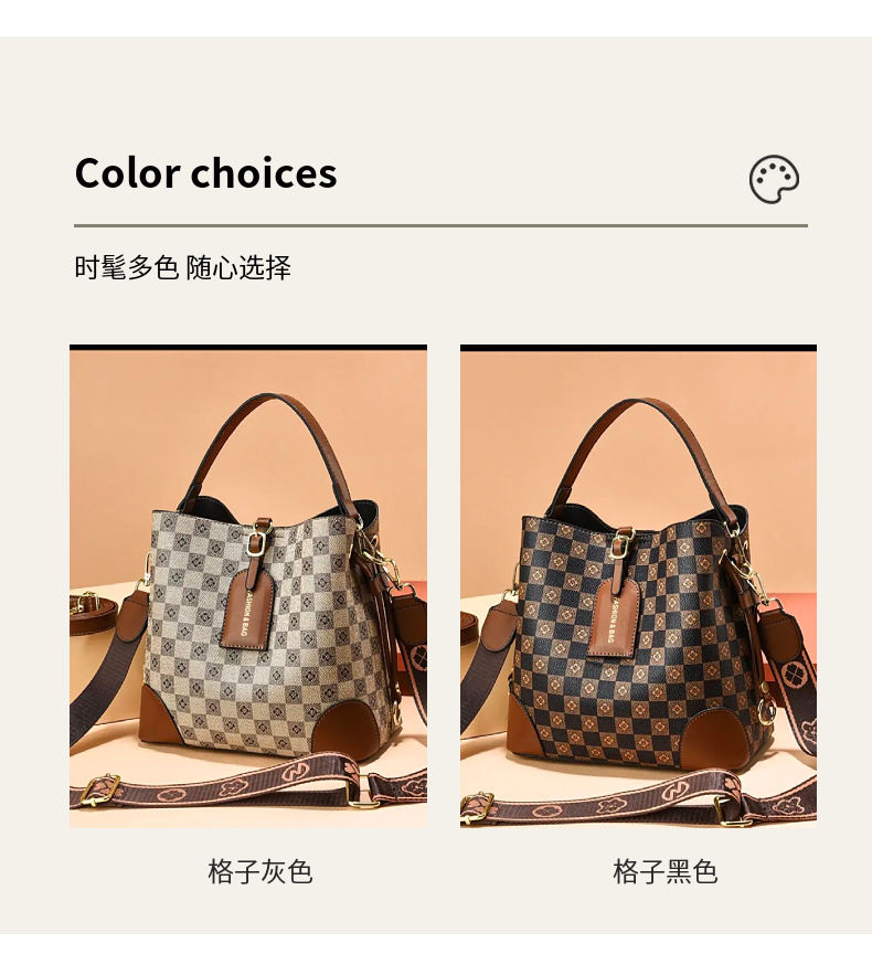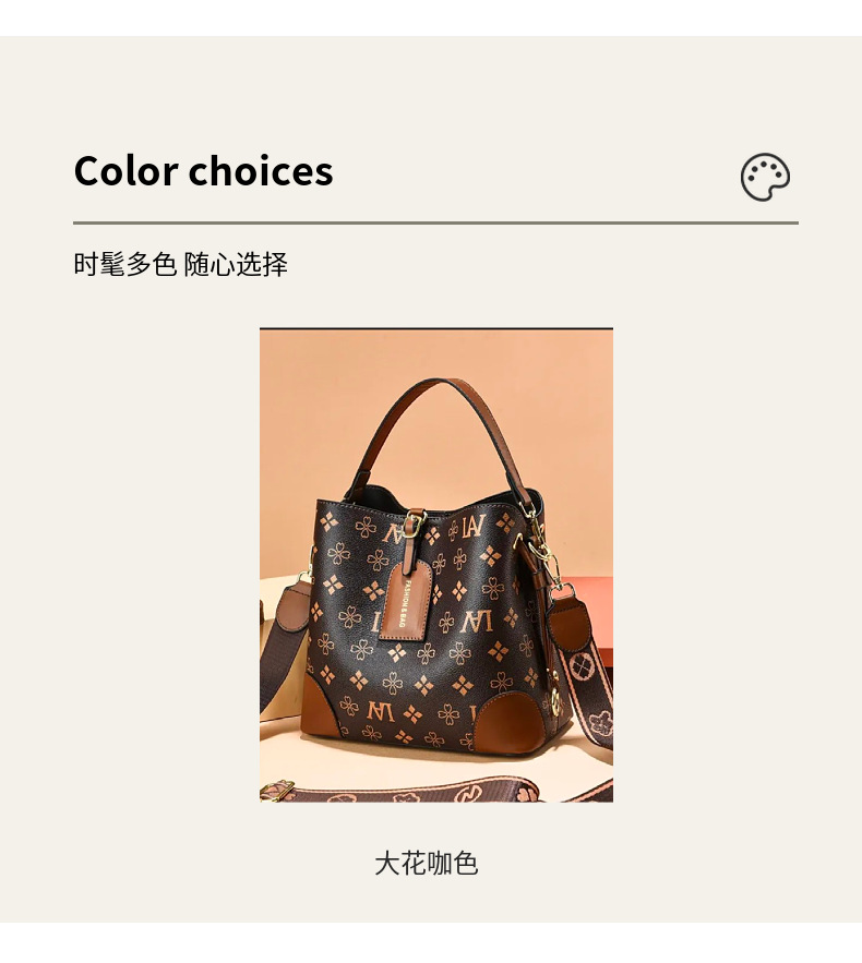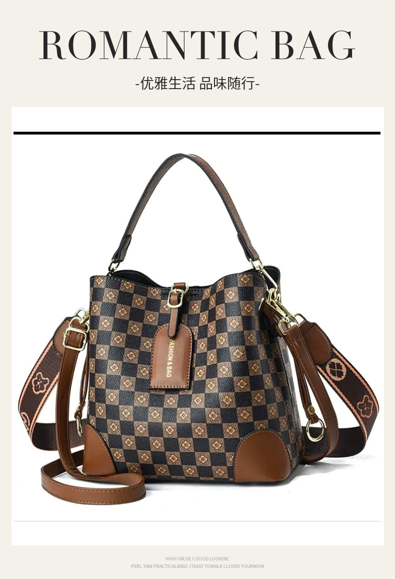 [라이브 폭발] 2023 새로운 패션 프린트 3 스트랩 대비 컬러 숄더 크로스 바디 여성용 휴대용 버킷 백