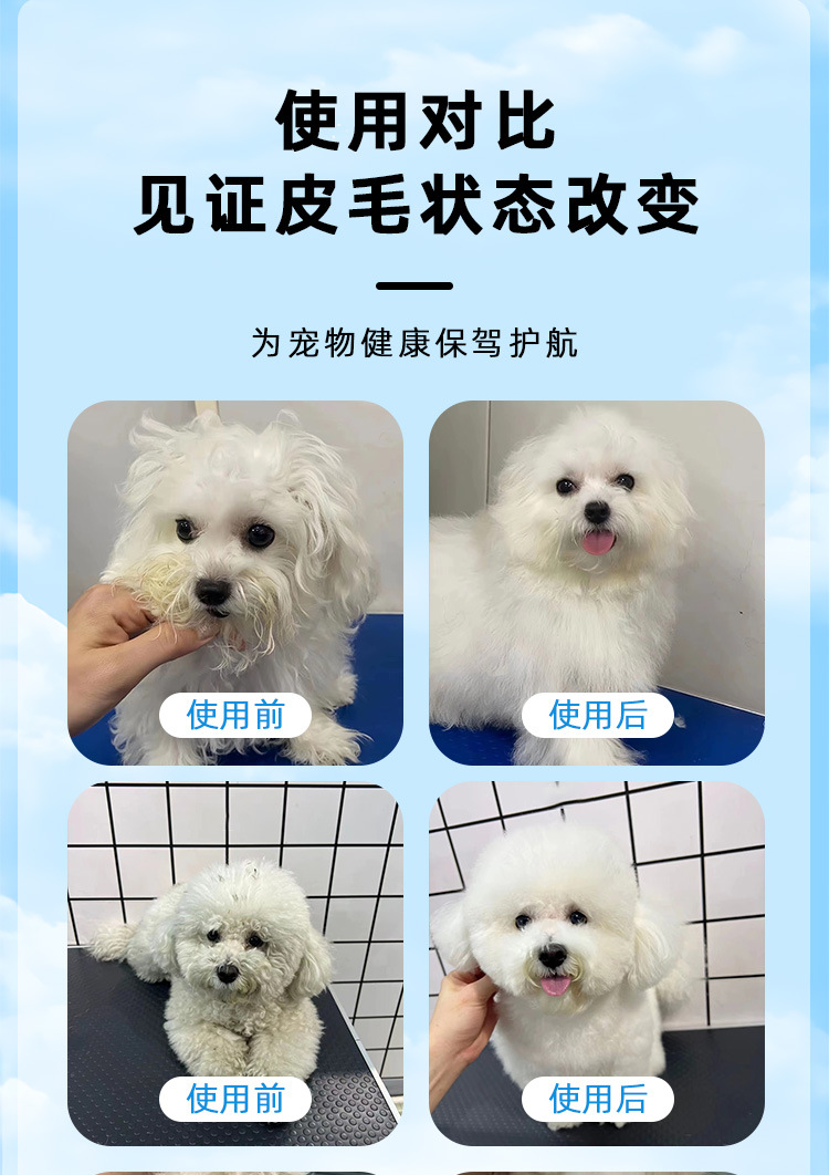 스타 치치 흰 머리 개 샤워 500ml 탈취제 애완 동물 샴푸 보메비 곰 사모예 목욕