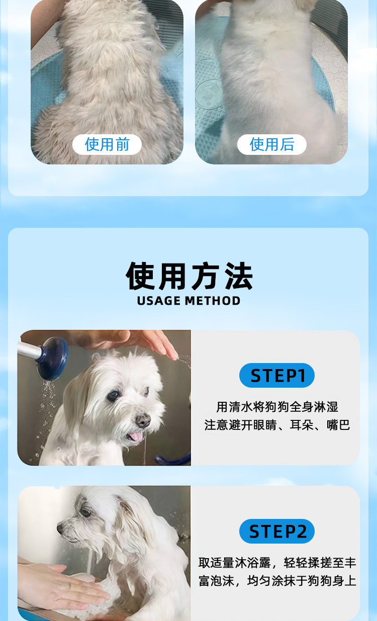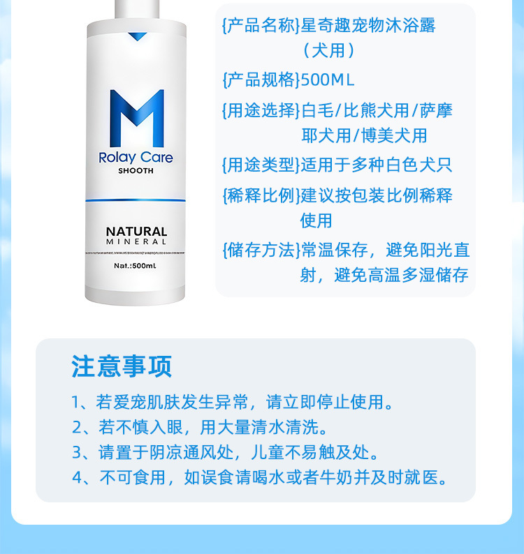 스타 치치 흰 머리 개 샤워 500ml 탈취제 애완 동물 샴푸 보메비 곰 사모예 목욕스토어 가기