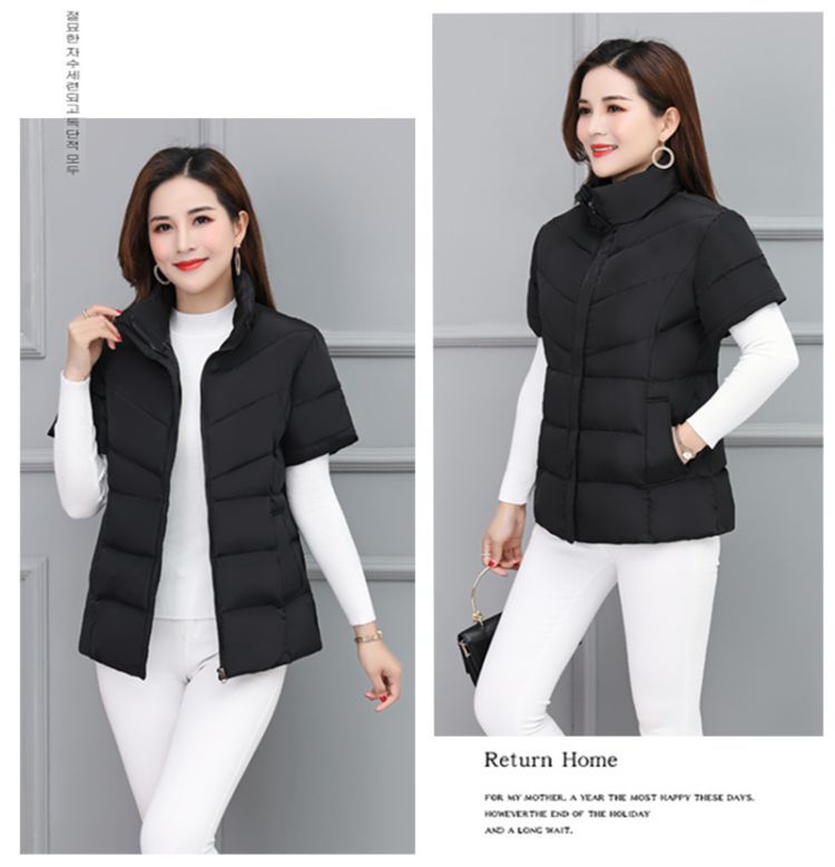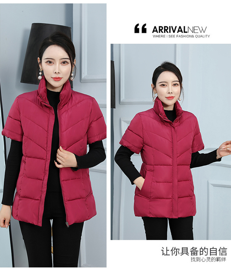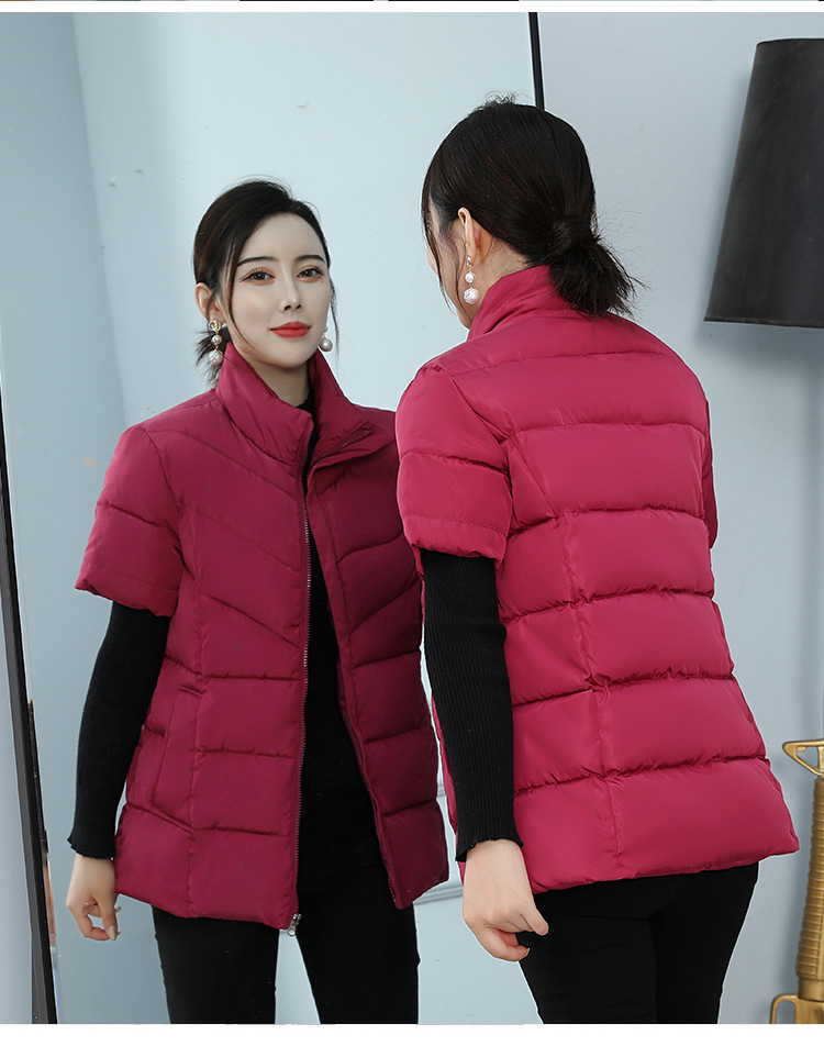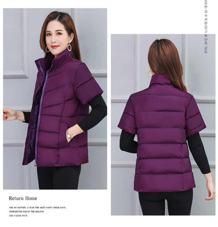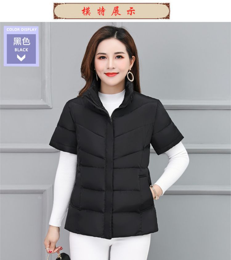 가을과 겨울 2023 여성의 새로운 슬림핏 따뜻한 어깨 패드 반 소매 면 조끼 짧은 단색 모든 매치 재킷 조끼스토어 가기