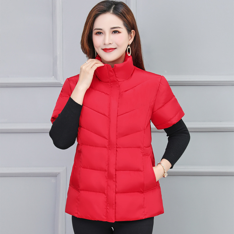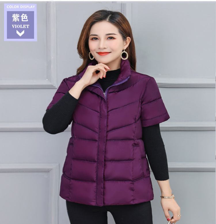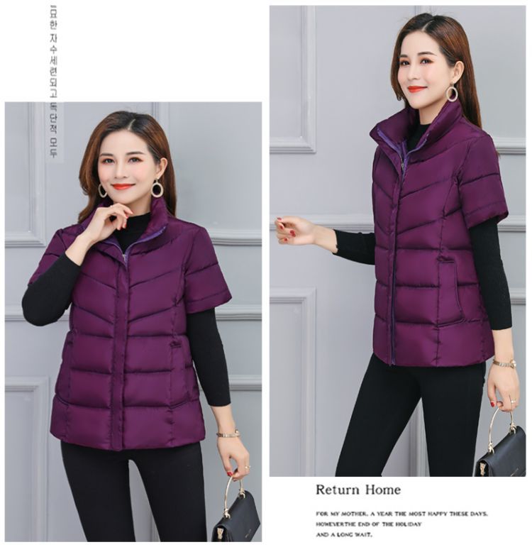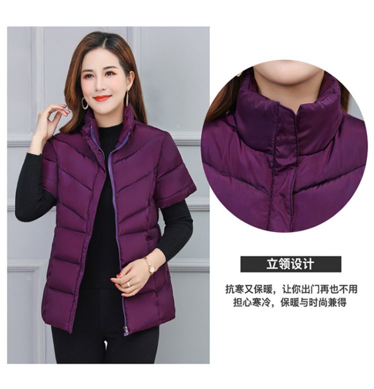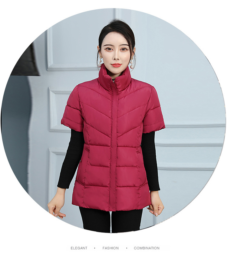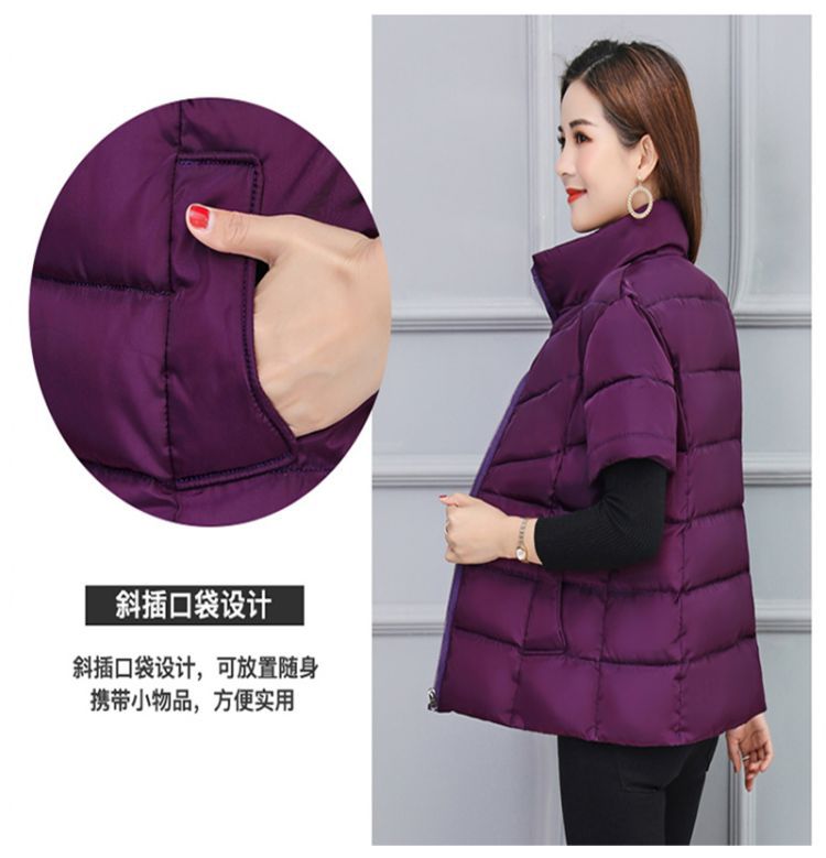 가을과 겨울 2023 여성의 새로운 슬림핏 따뜻한 어깨 패드 반 소매 면 조끼 짧은 단색 모든 매치 재킷 조끼스토어 가기