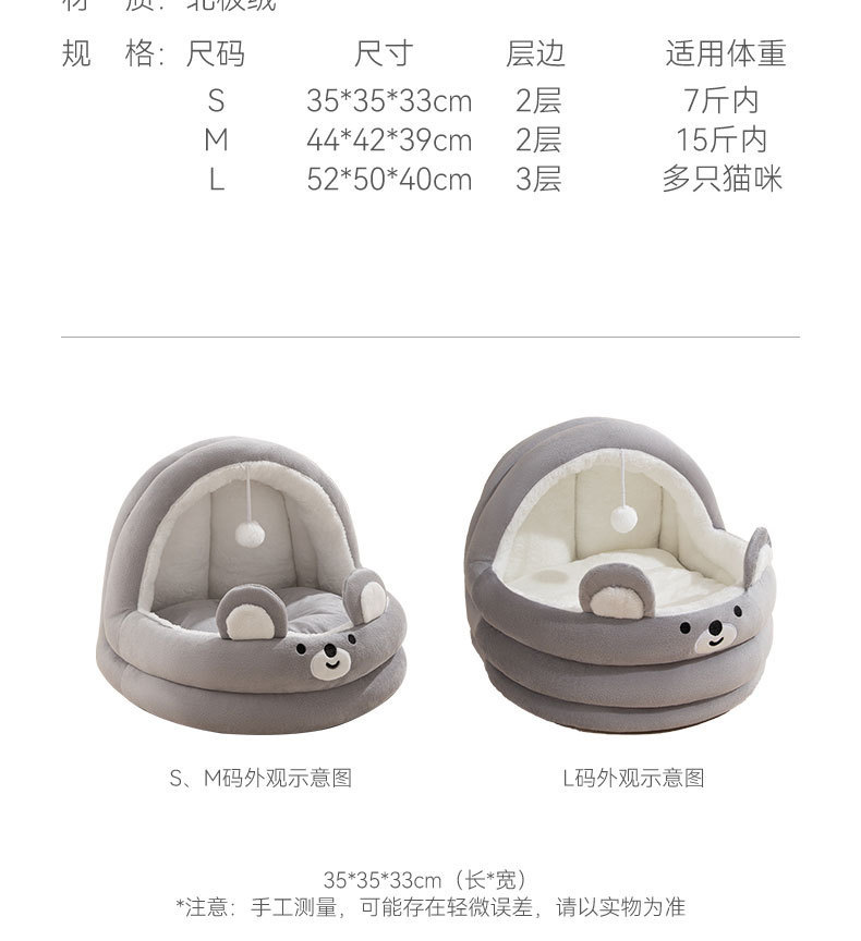 动物造型窝和摇篮窝的尺码非通用,亲们看好尺码再拍哦~~