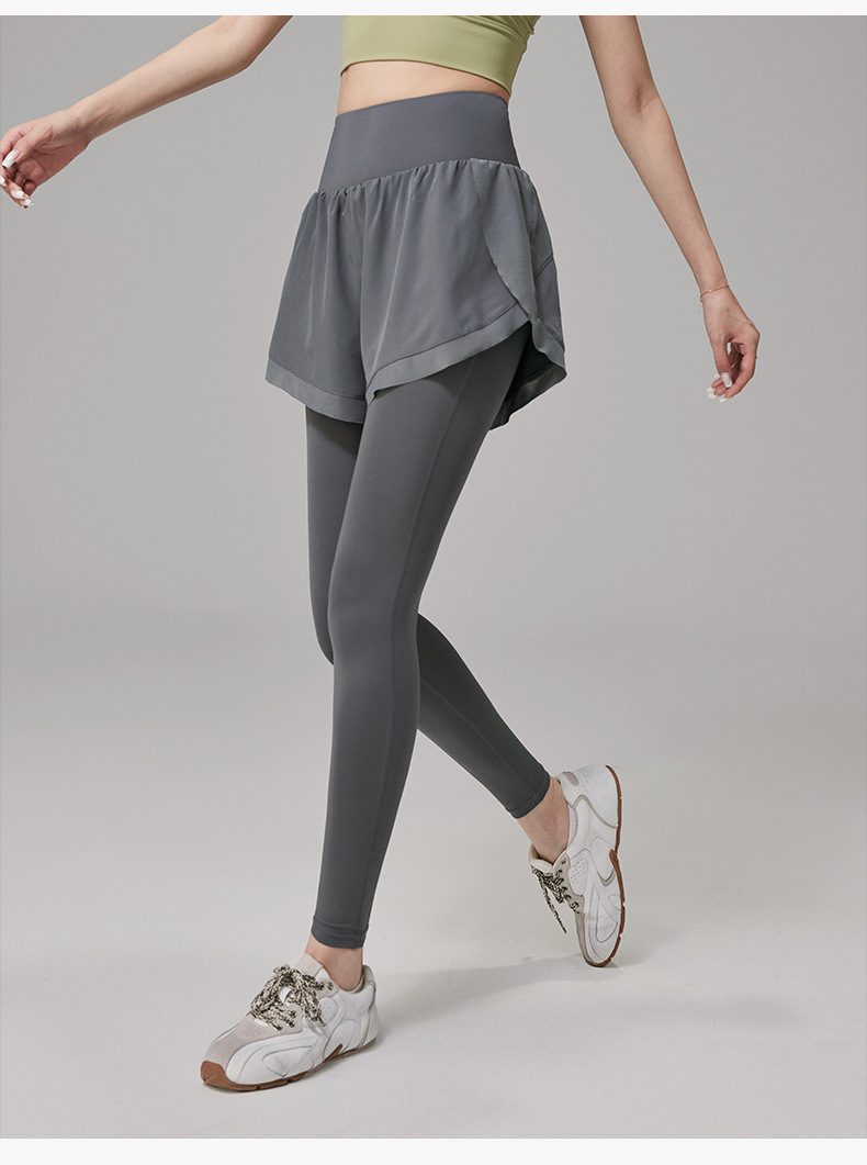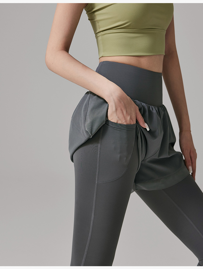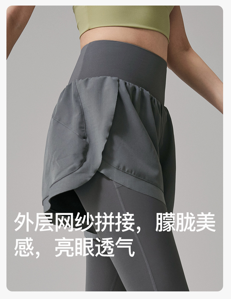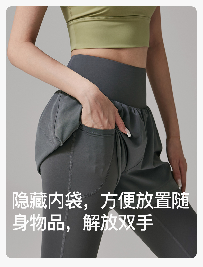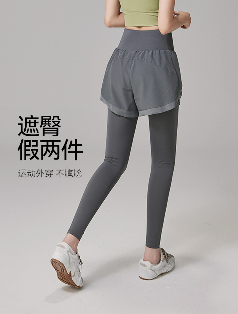 假两件瑜伽裤女高腰提臀紧身跑步运动裤大码户外速干健身长裤