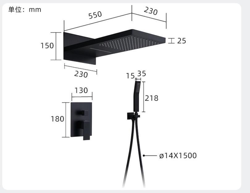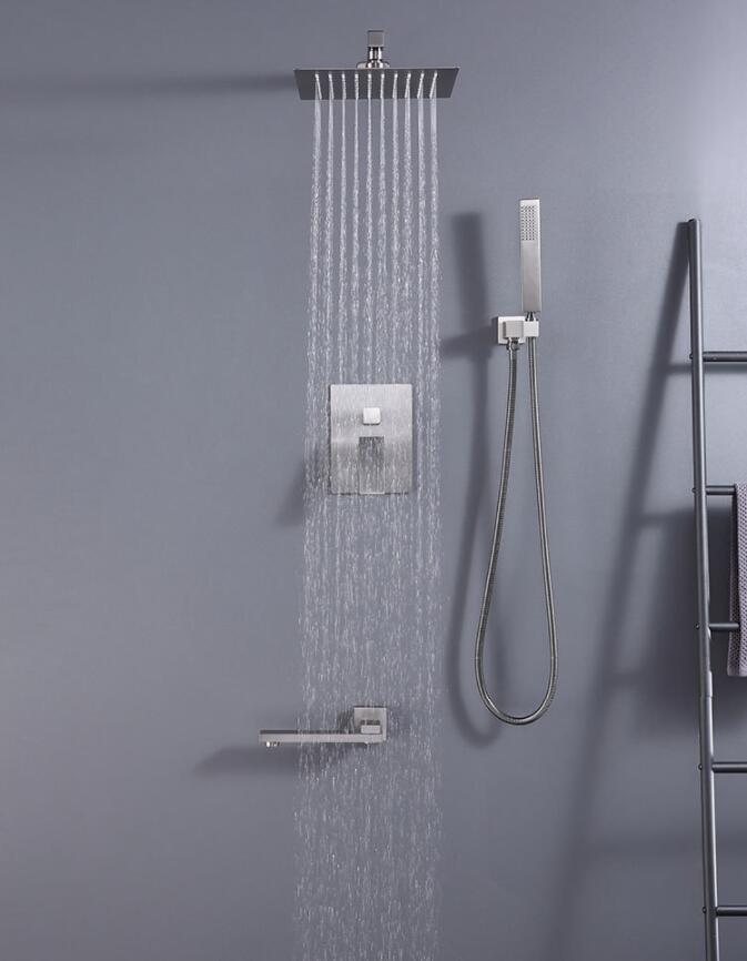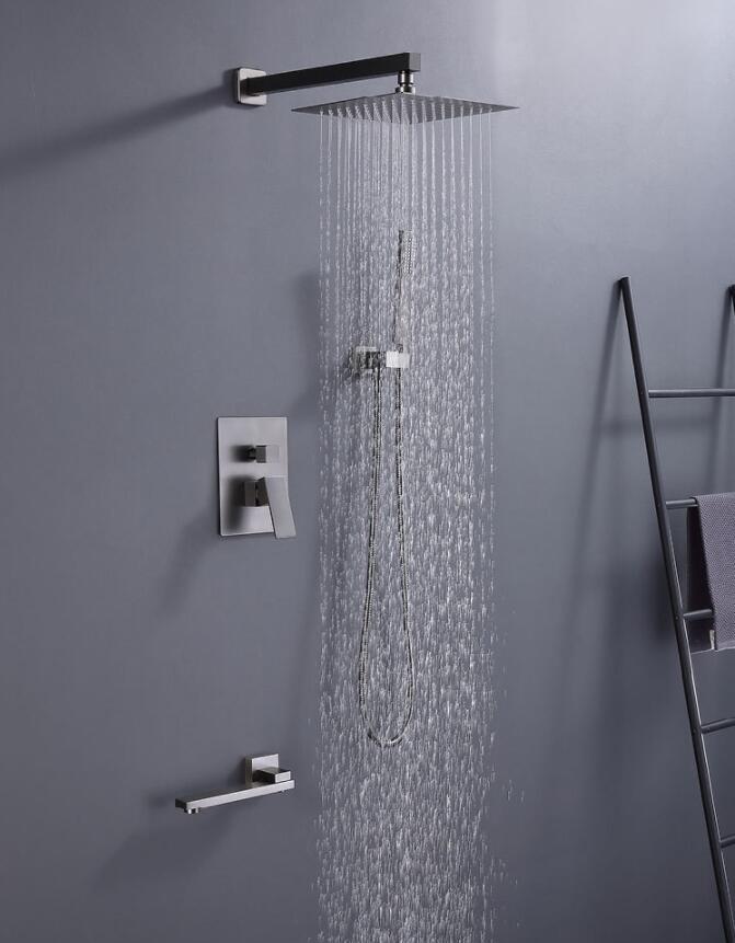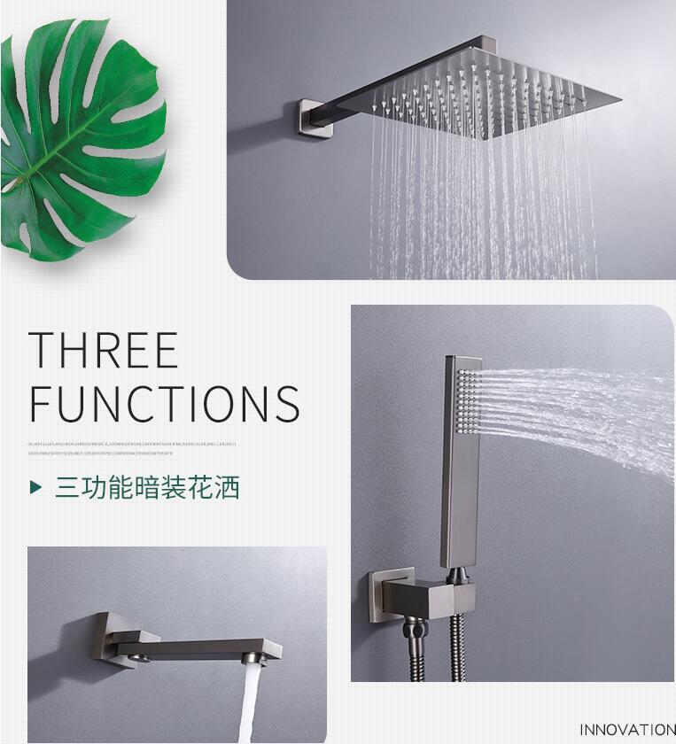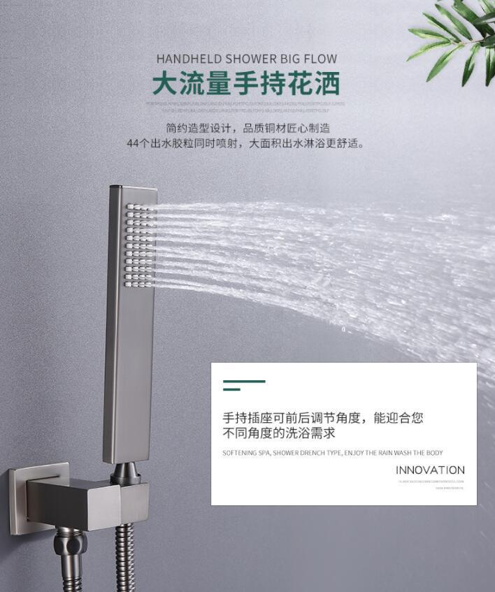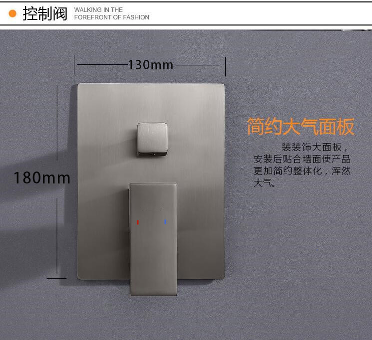 총 회색 스테인레스 스틸 숨겨진 샤워 샤워 욕실 벽에 숨겨진 샤워 수도꼭지 세트
