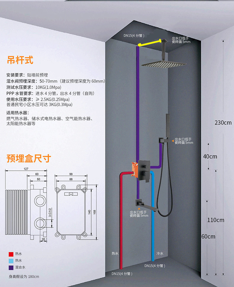 • 04GB-12145 숨겨진 검정색 단일 기능 샤워 헤드
