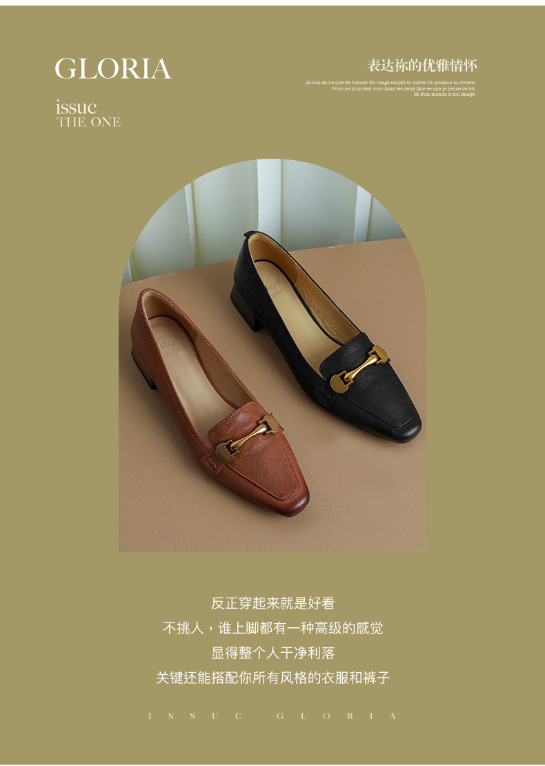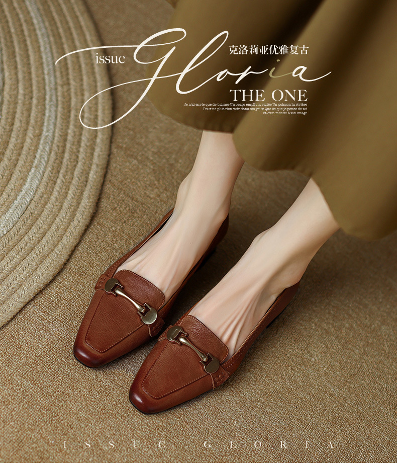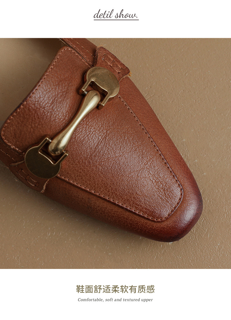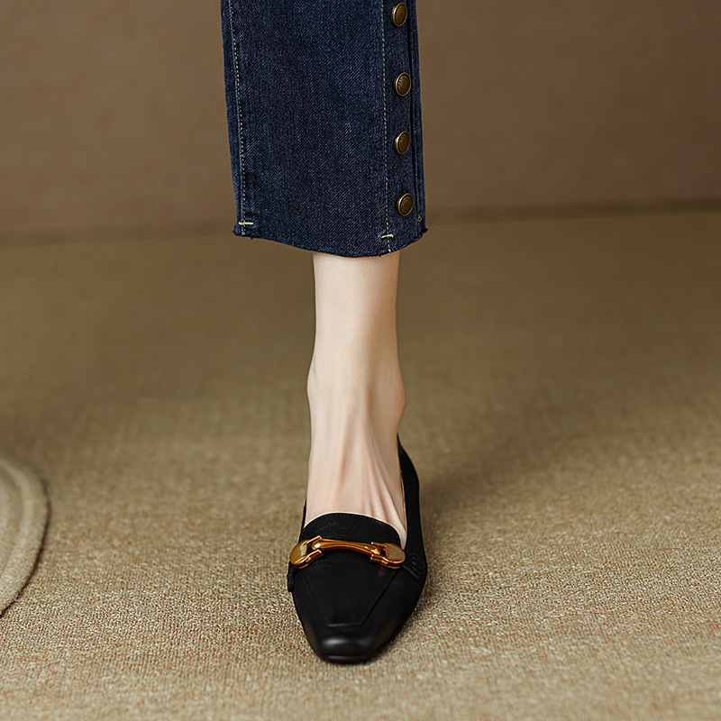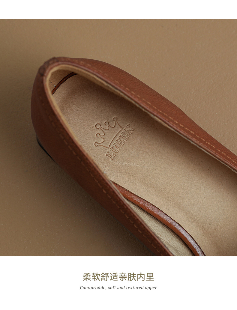 复古小方头英伦风小皮鞋女春秋季新款真皮百搭粗中低跟浅口单鞋子