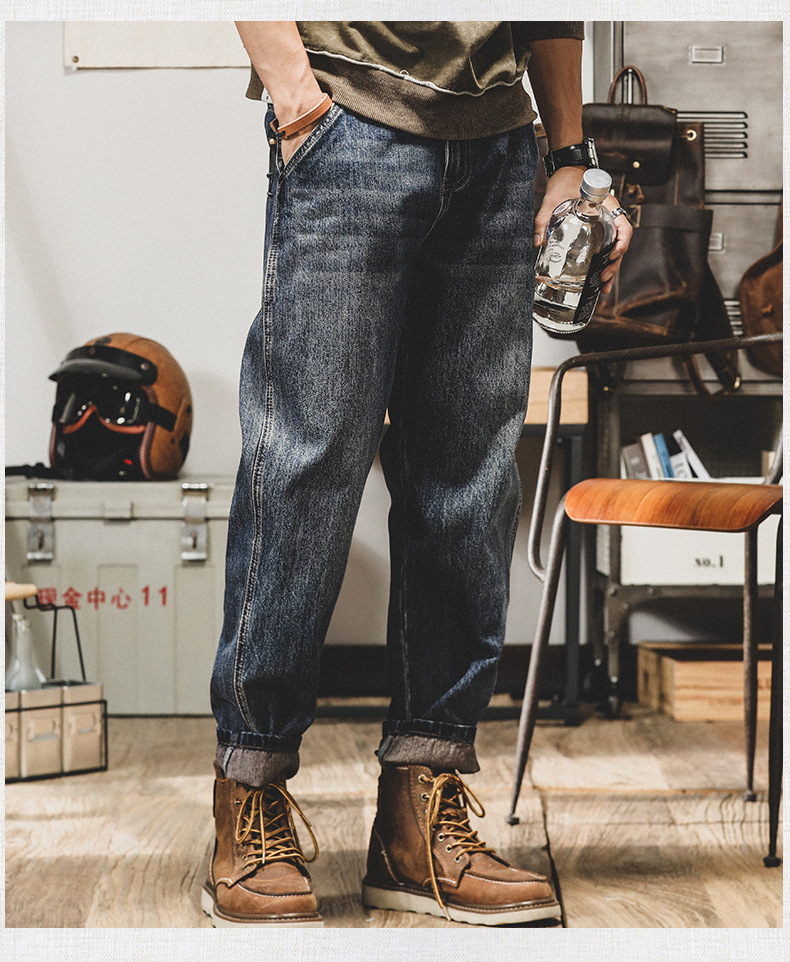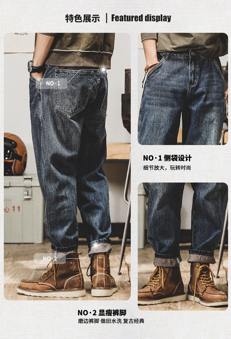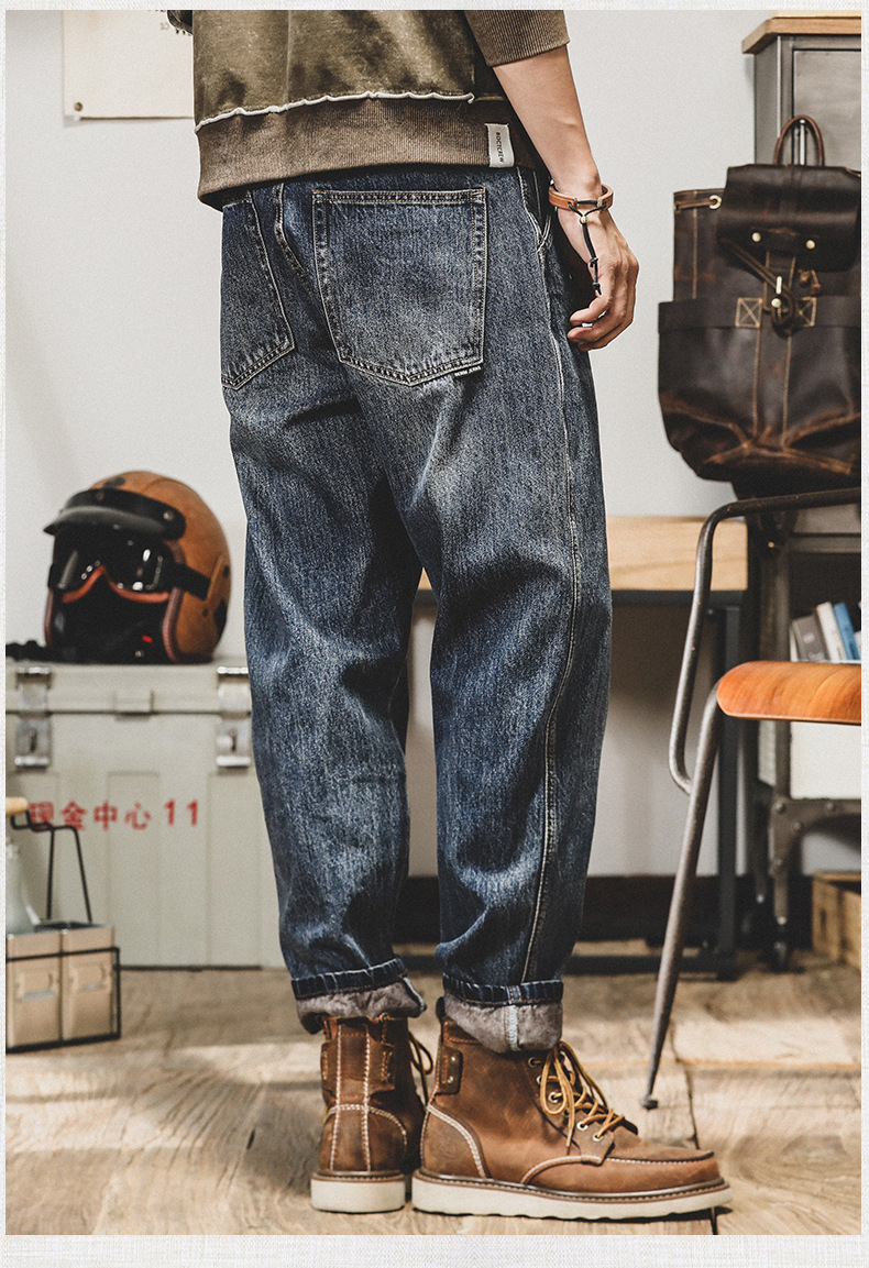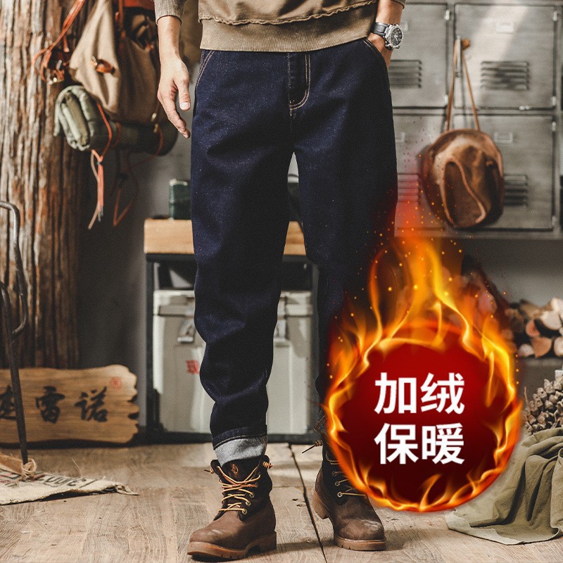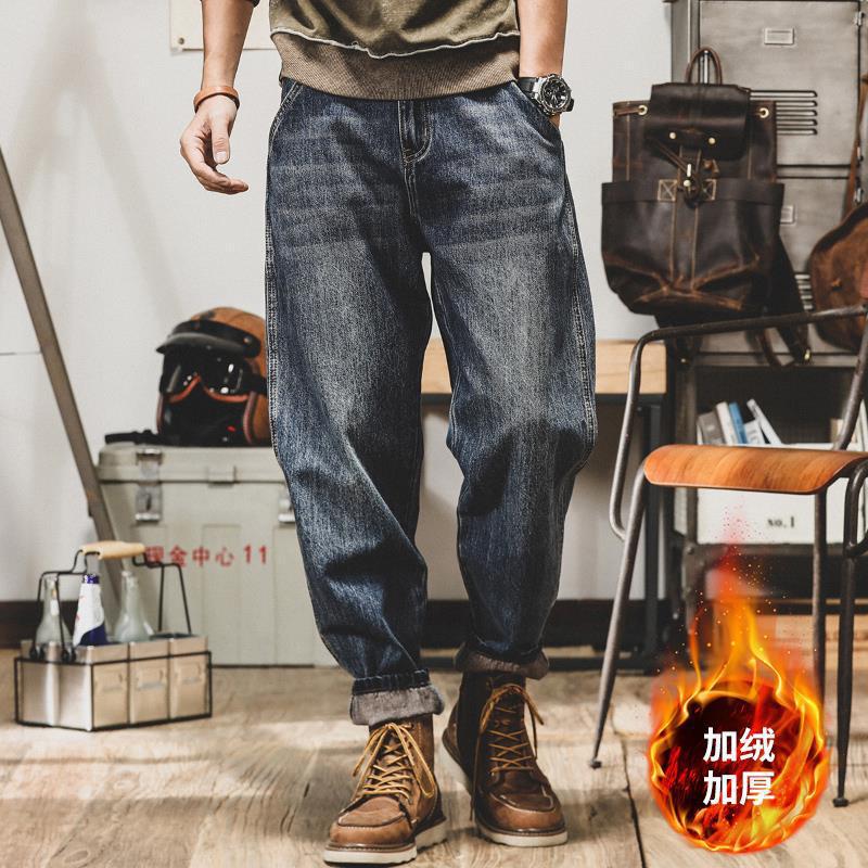 미국 레트로 스타일 기모 안감 두꺼운 데님 팬츠 남성용 루즈핏 빅사이즈 스트레이트 2025 신상 캐주얼 롱 팬츠 트렌디 브랜드 바지스토어 가기