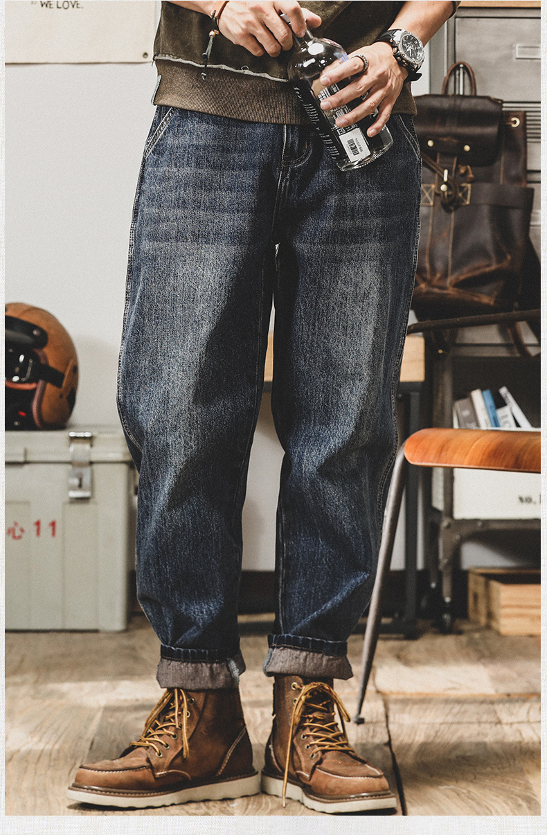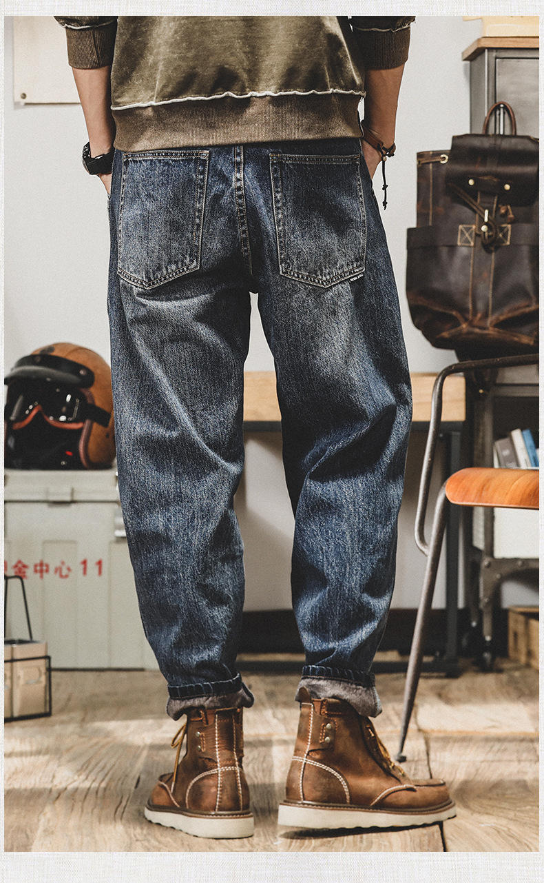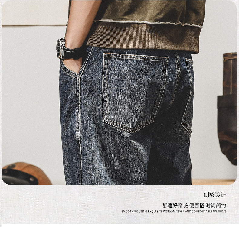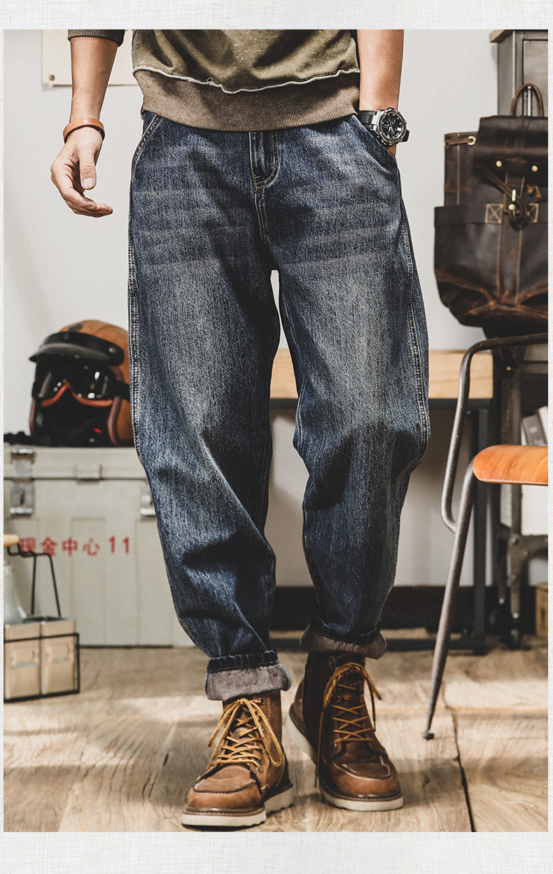 미국 레트로 스타일 기모 안감 두꺼운 데님 팬츠 남성용 루즈핏 빅사이즈 스트레이트 2025 신상 캐주얼 롱 팬츠 트렌디 브랜드 바지스토어 가기