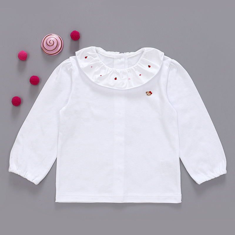 F 가족 아동 의류 봄과 가을 어린이 만화 곰 사과 자수 레이스 칼라 긴팔 셔츠 폴로 셔츠 배달