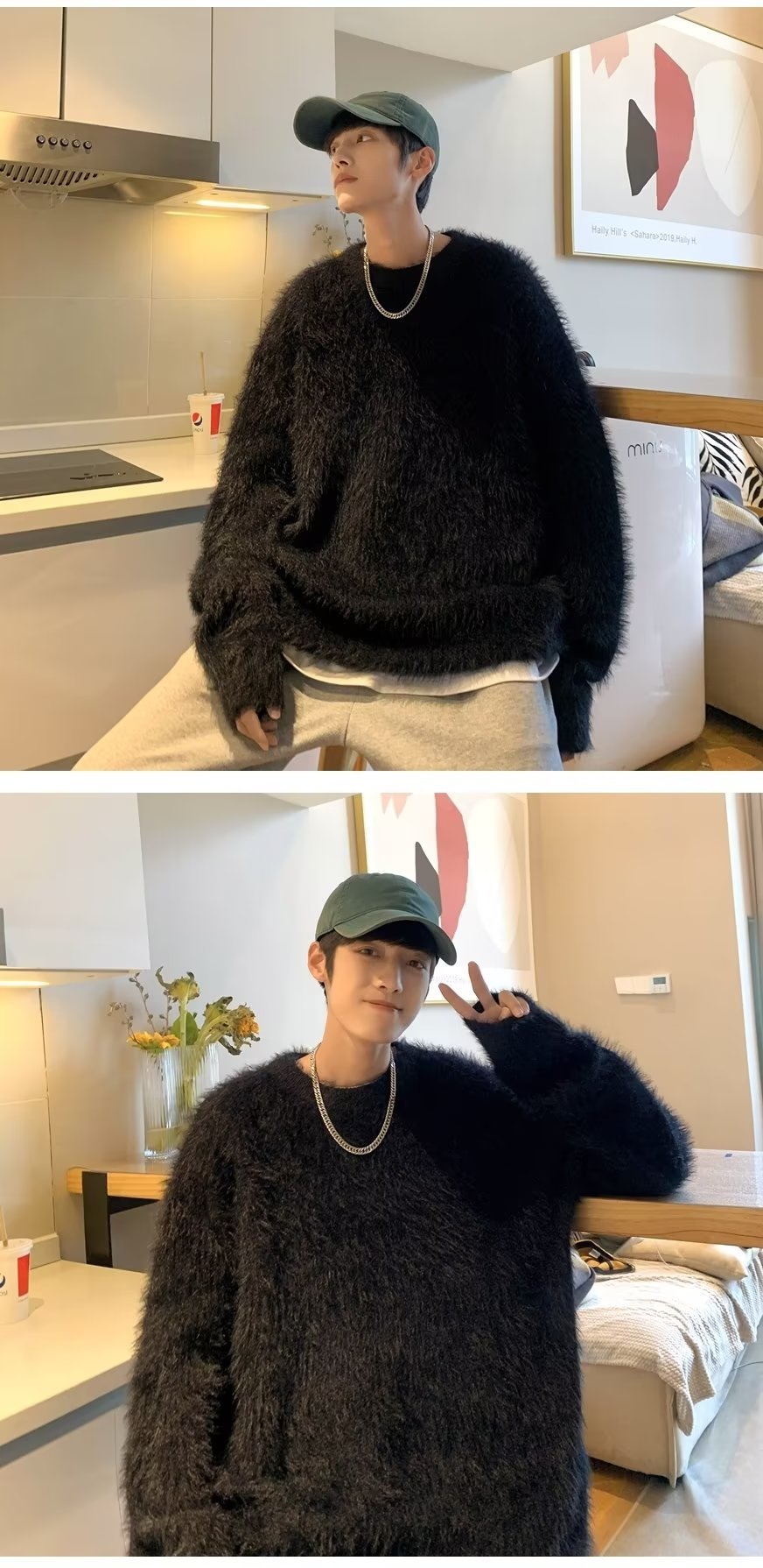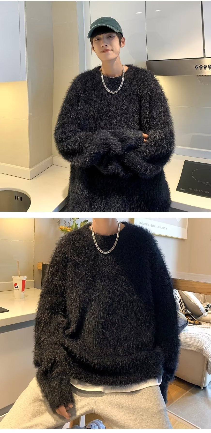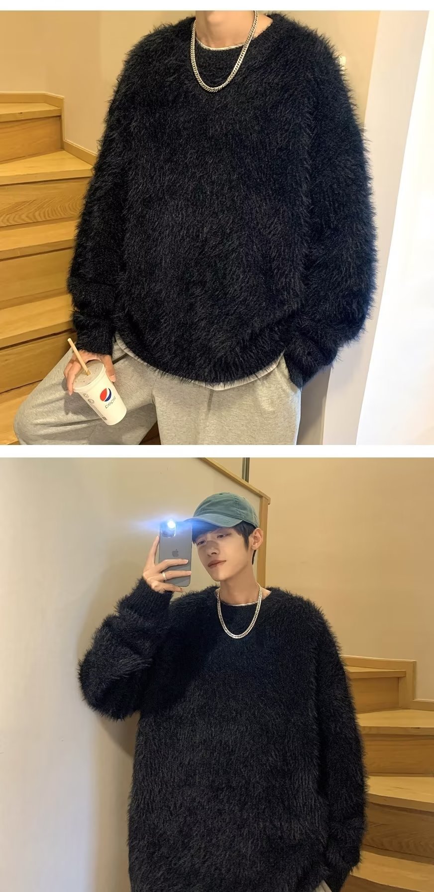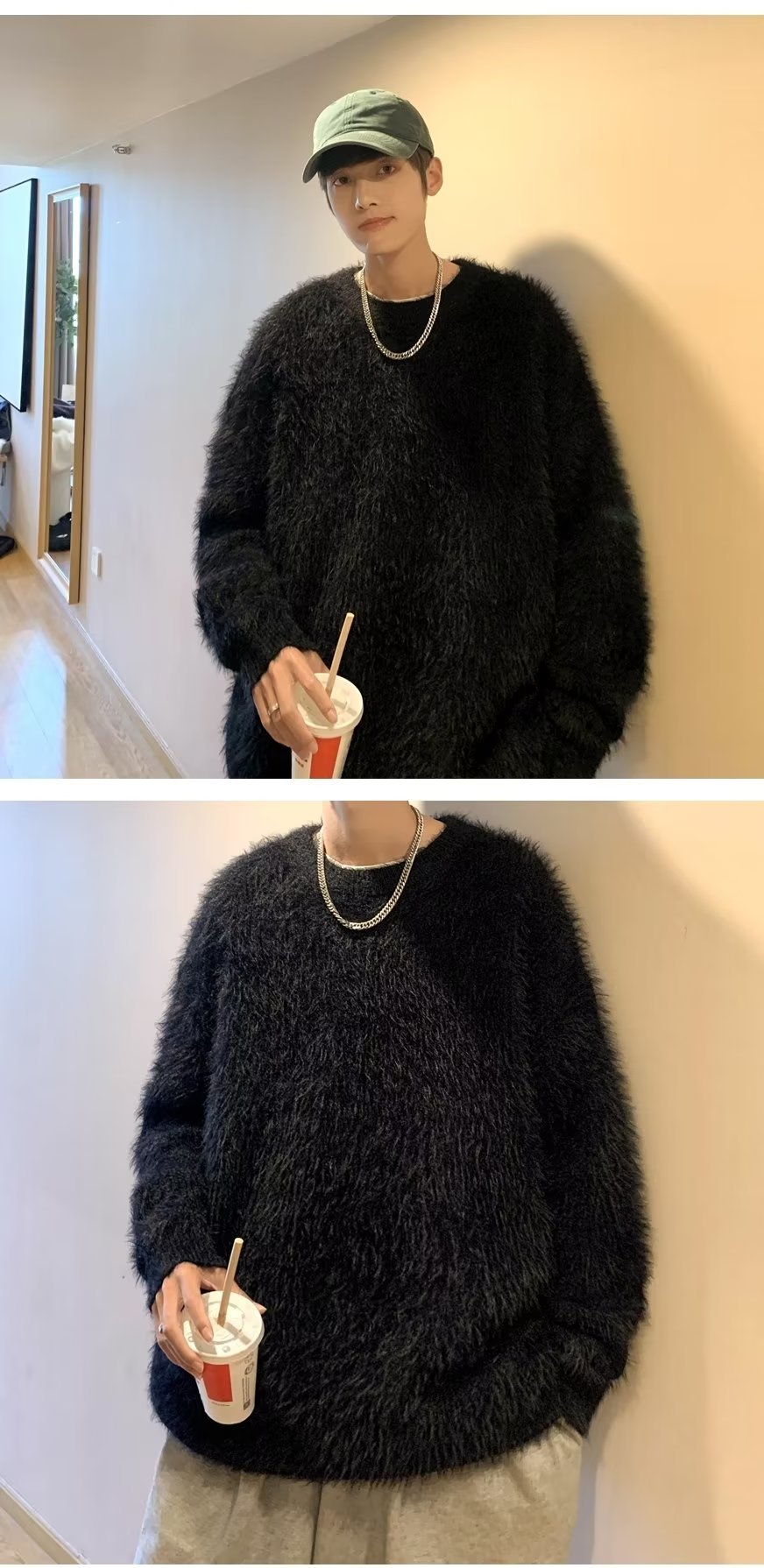 겨울 남자 가짜 밍크 벨벳 스웨터 내부 따뜻한 티셔츠 바닥 셔츠 봉제 스웨터 남성용 겨울 스웨터스토어 가기