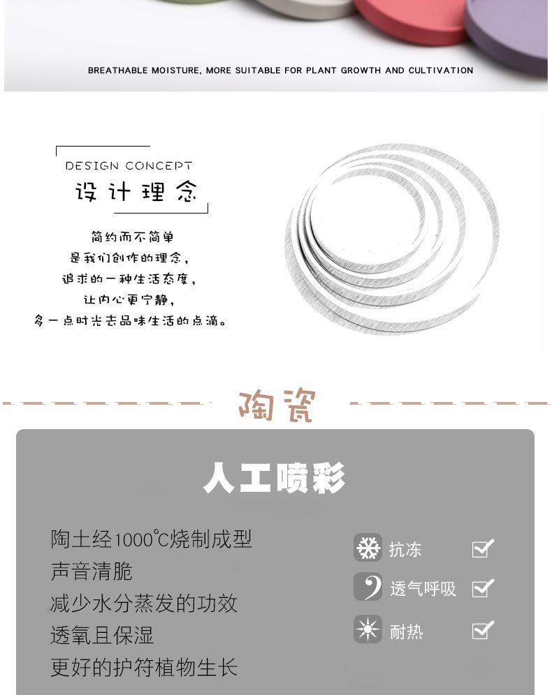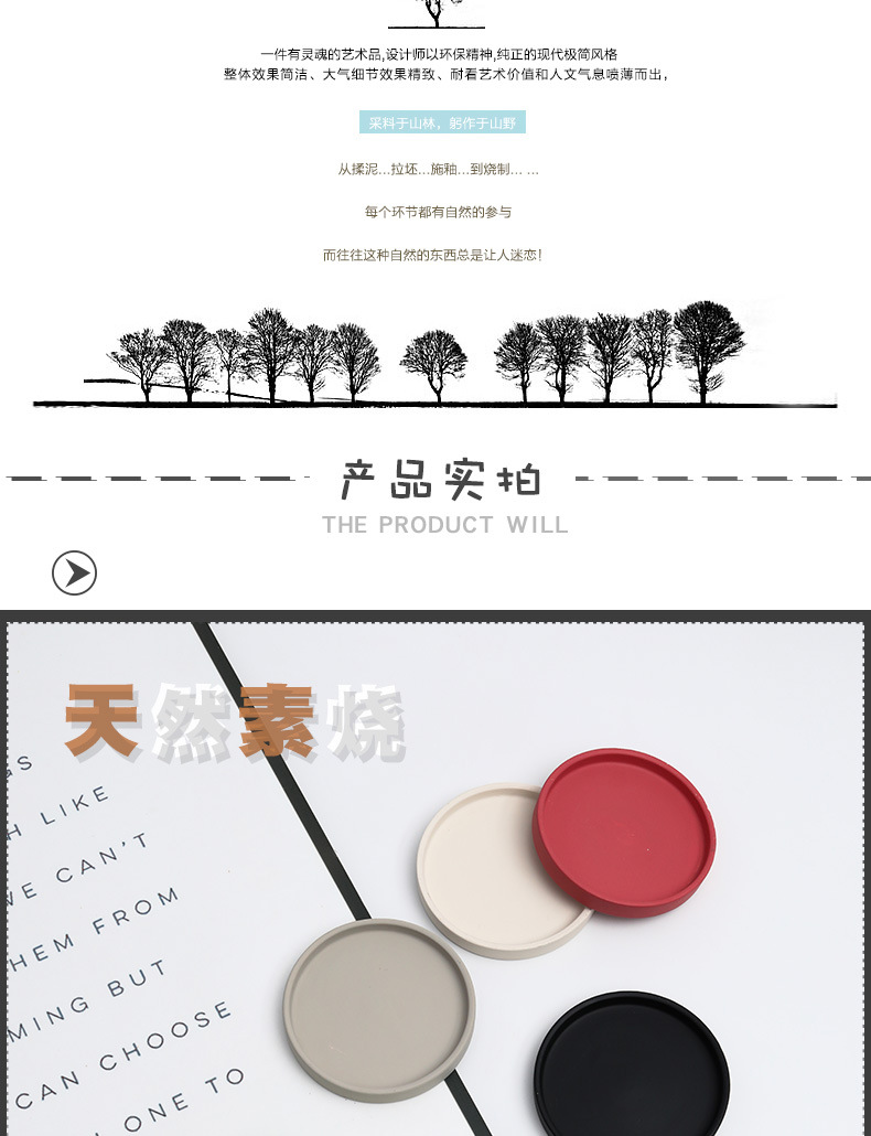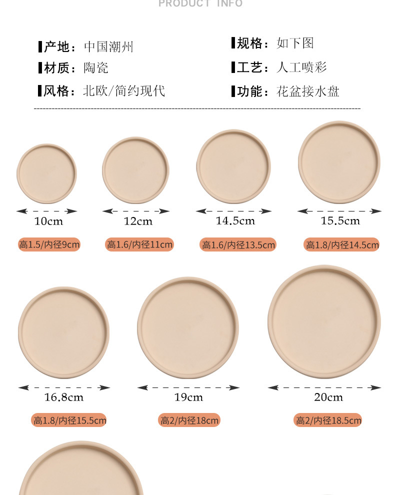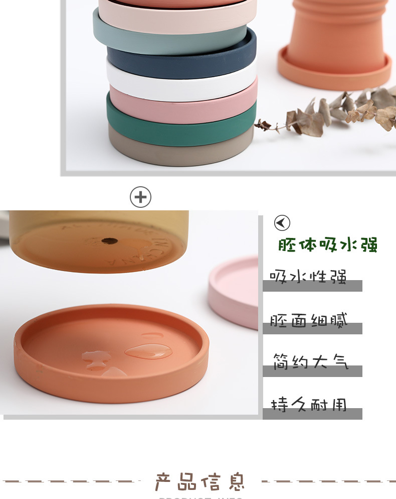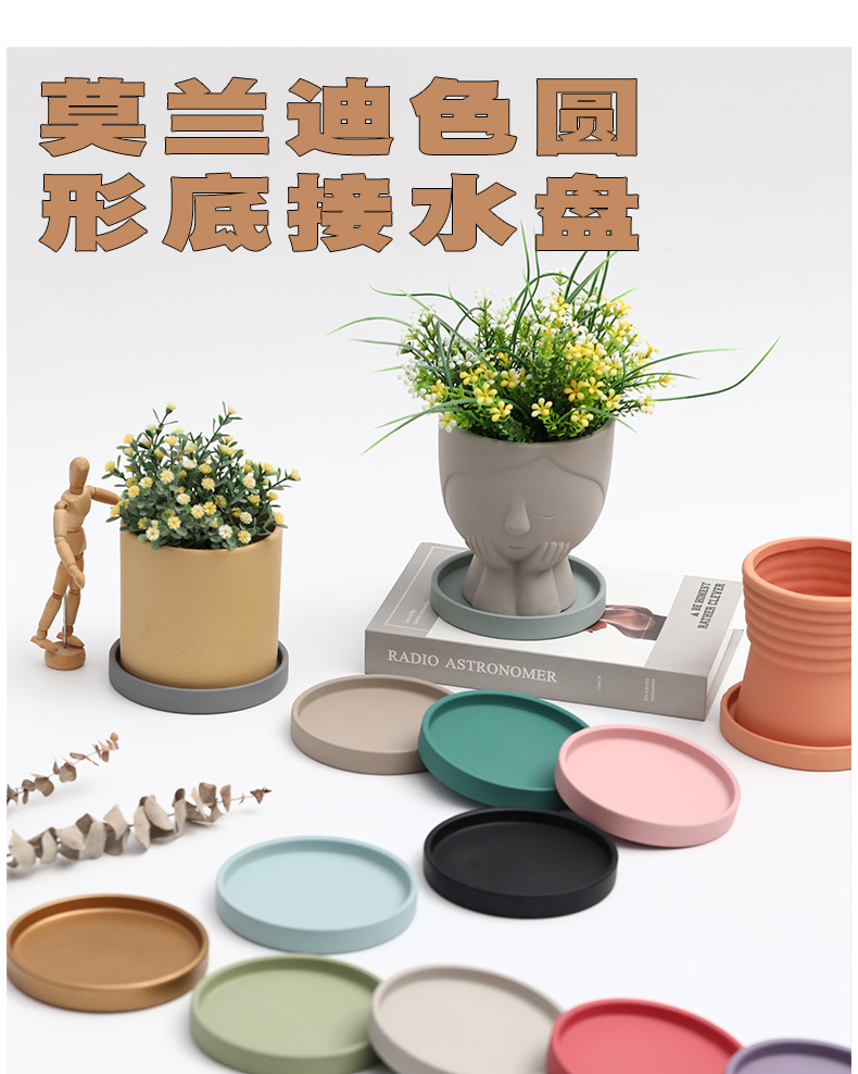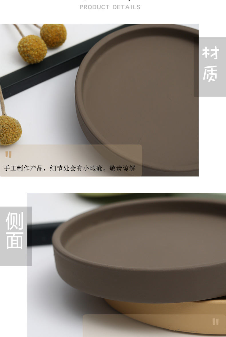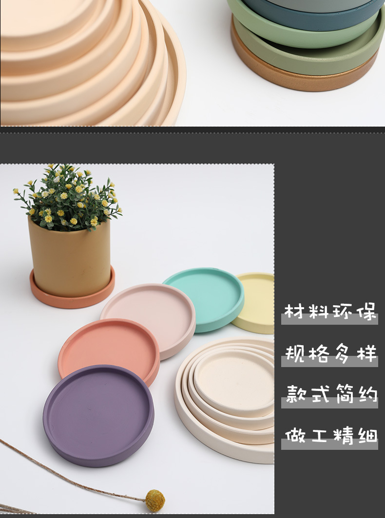 세라믹 원형 화분 물 트레이 북유럽 장식 모란디 안료 버닝베이스 두꺼운 쿠션 물 콘센트