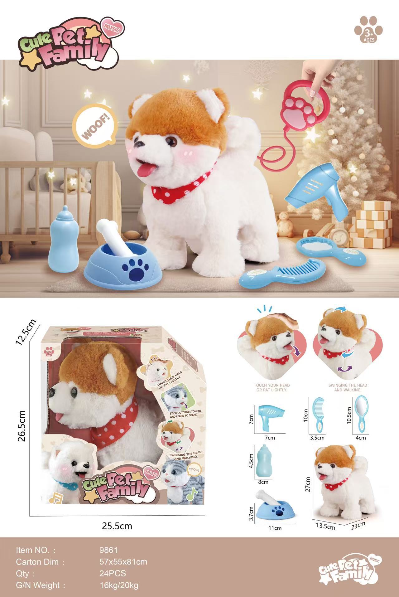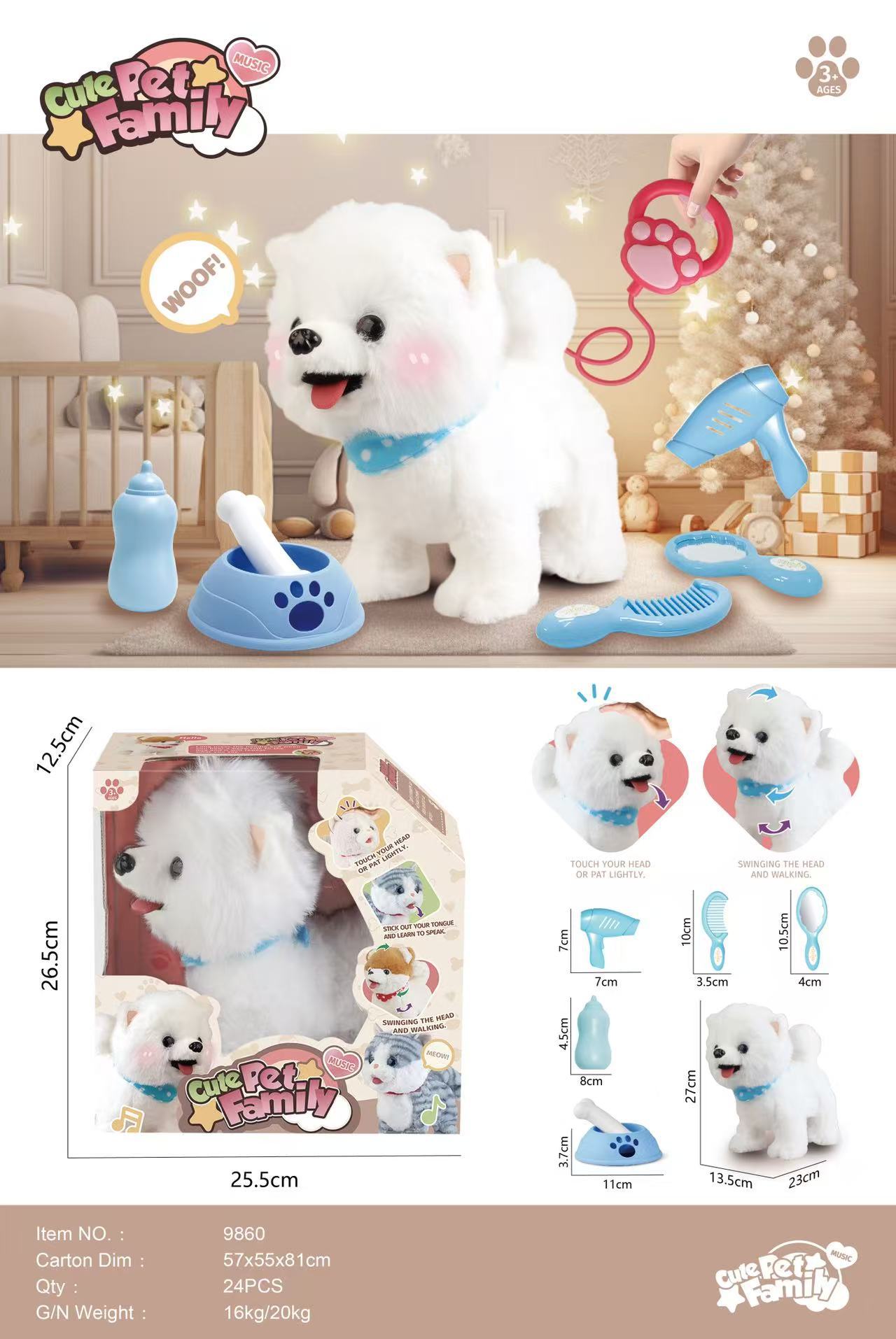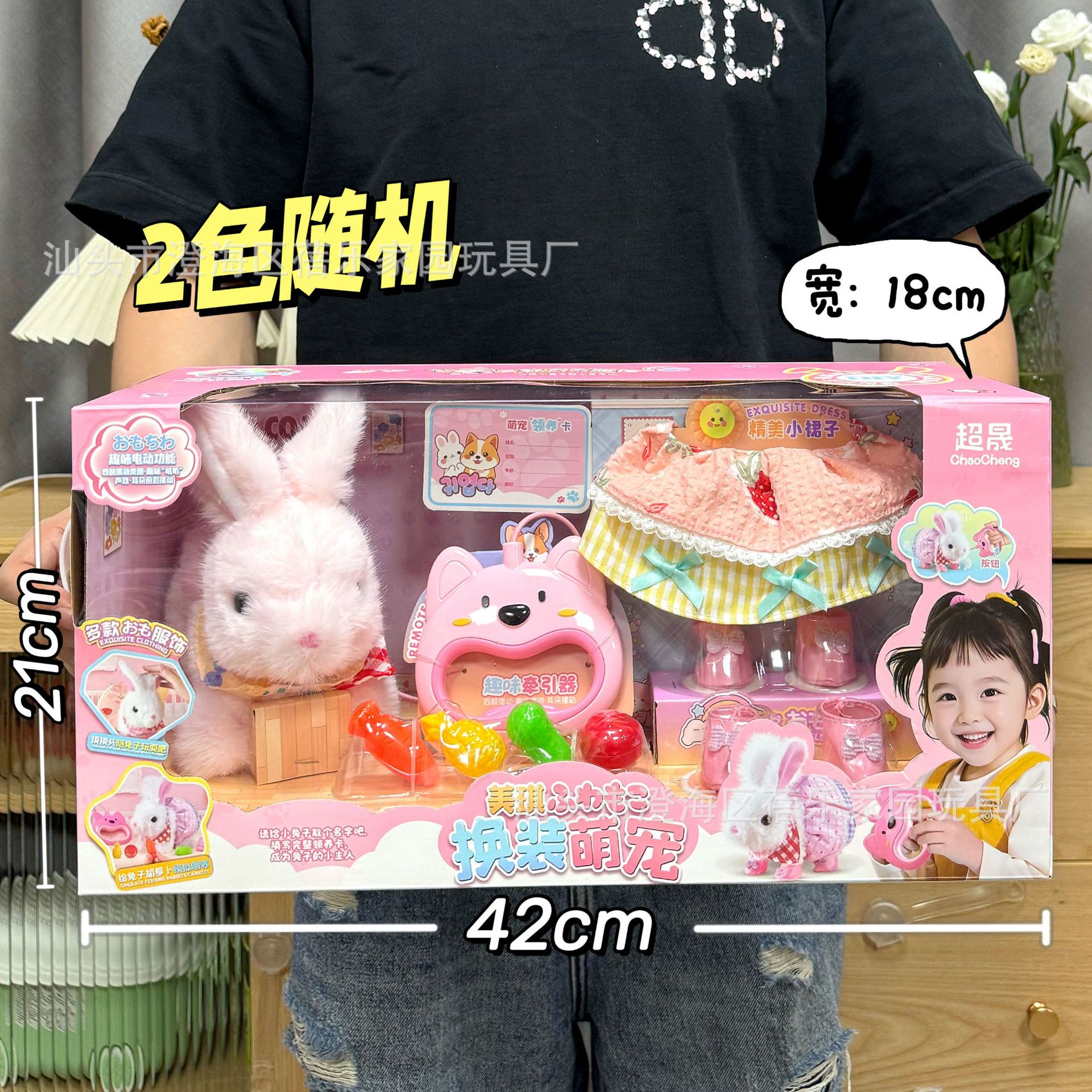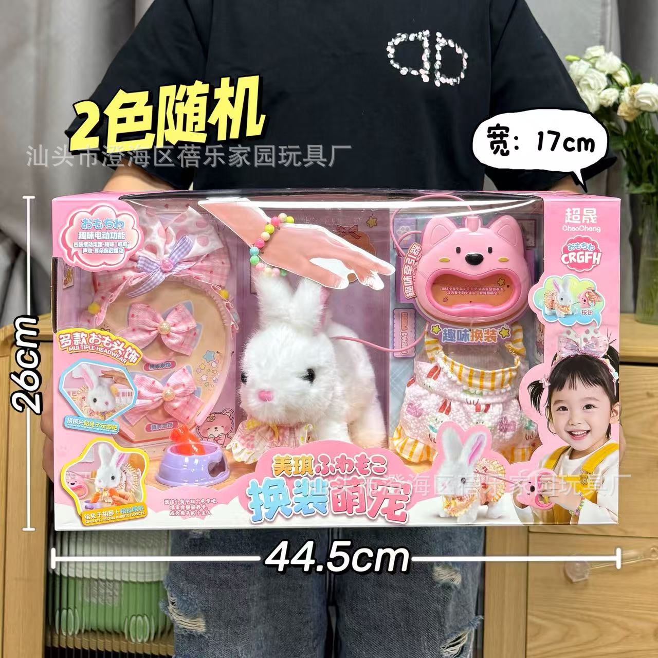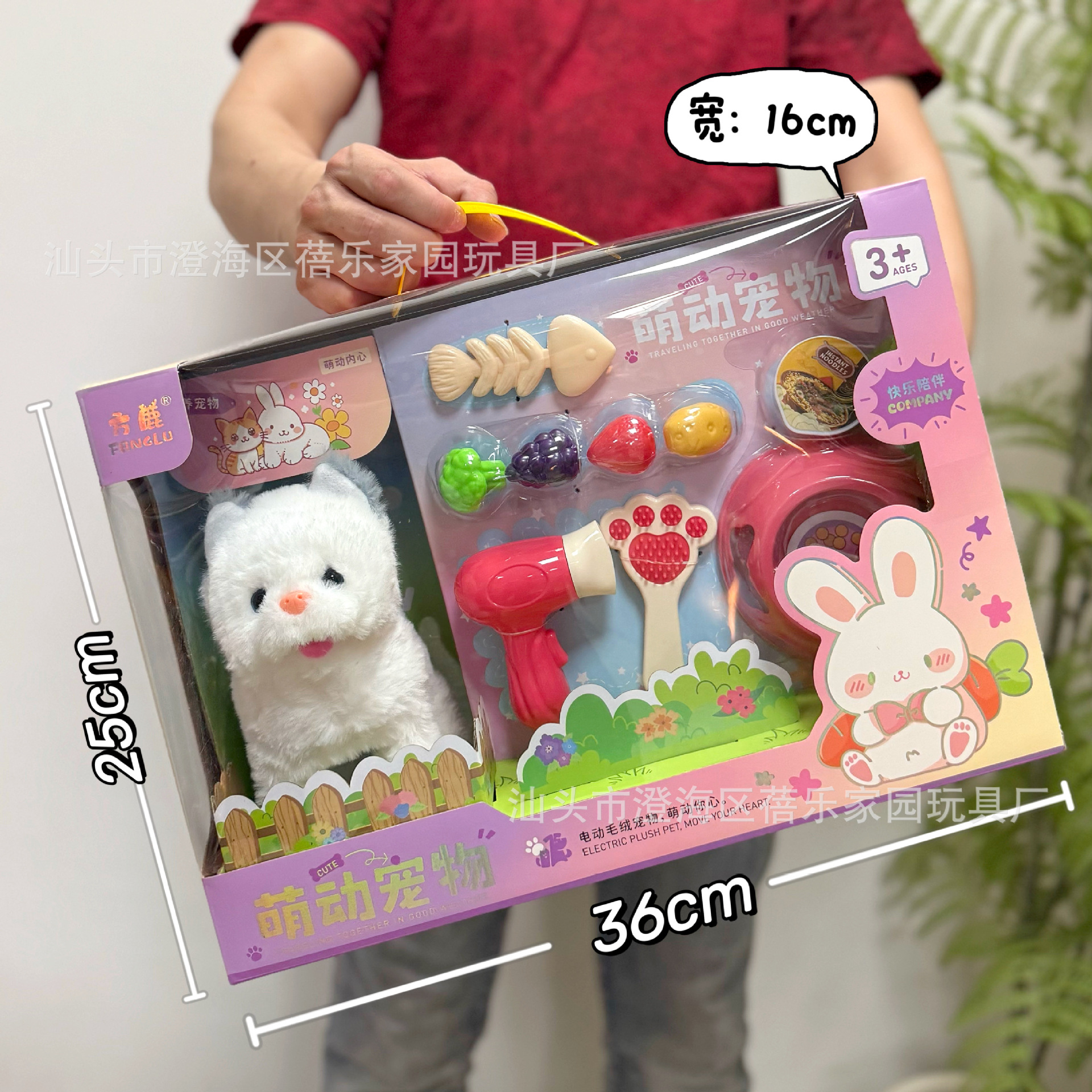 슈퍼마켓 선물 상자 시뮬레이션 전기 개 봉제 애완 동물 장난감 워킹 테디 화이트 토끼 어린이 선물
