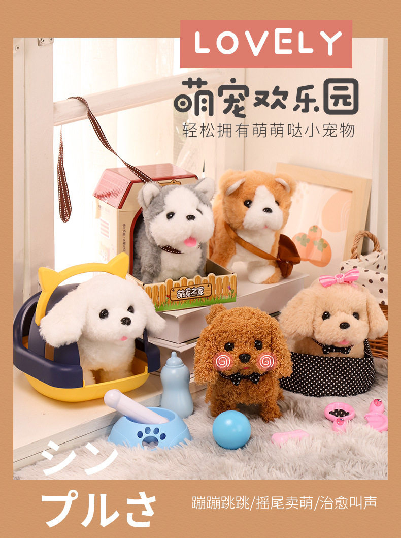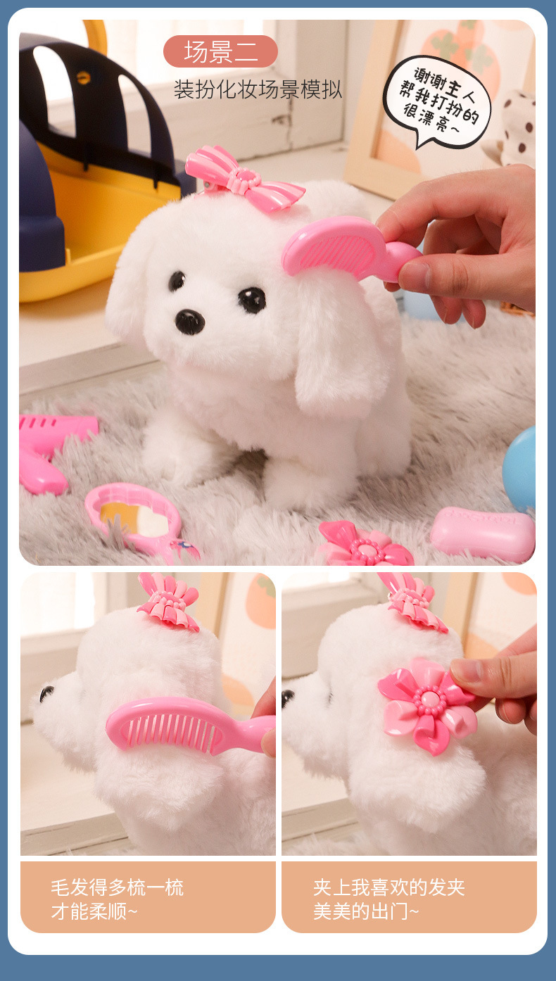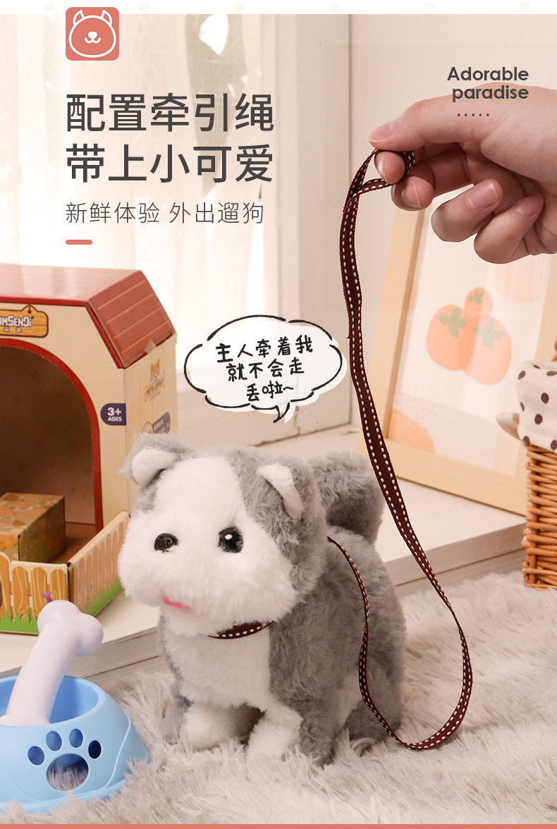 슈퍼마켓 선물 상자 시뮬레이션 전기 개 봉제 애완 동물 장난감 워킹 테디 화이트 토끼 어린이 선물스토어 가기