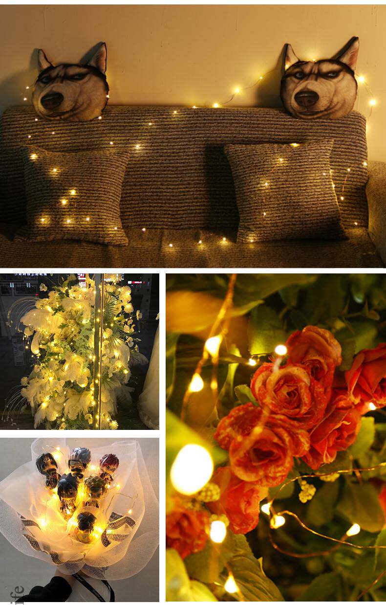LED 구리선 조명줄, 버튼 배터리 박스, 선물 상자, 꽃다발 조명줄, 꽃, 케이크, 크리스마스, 웨딩 장식, 반짝이 조명