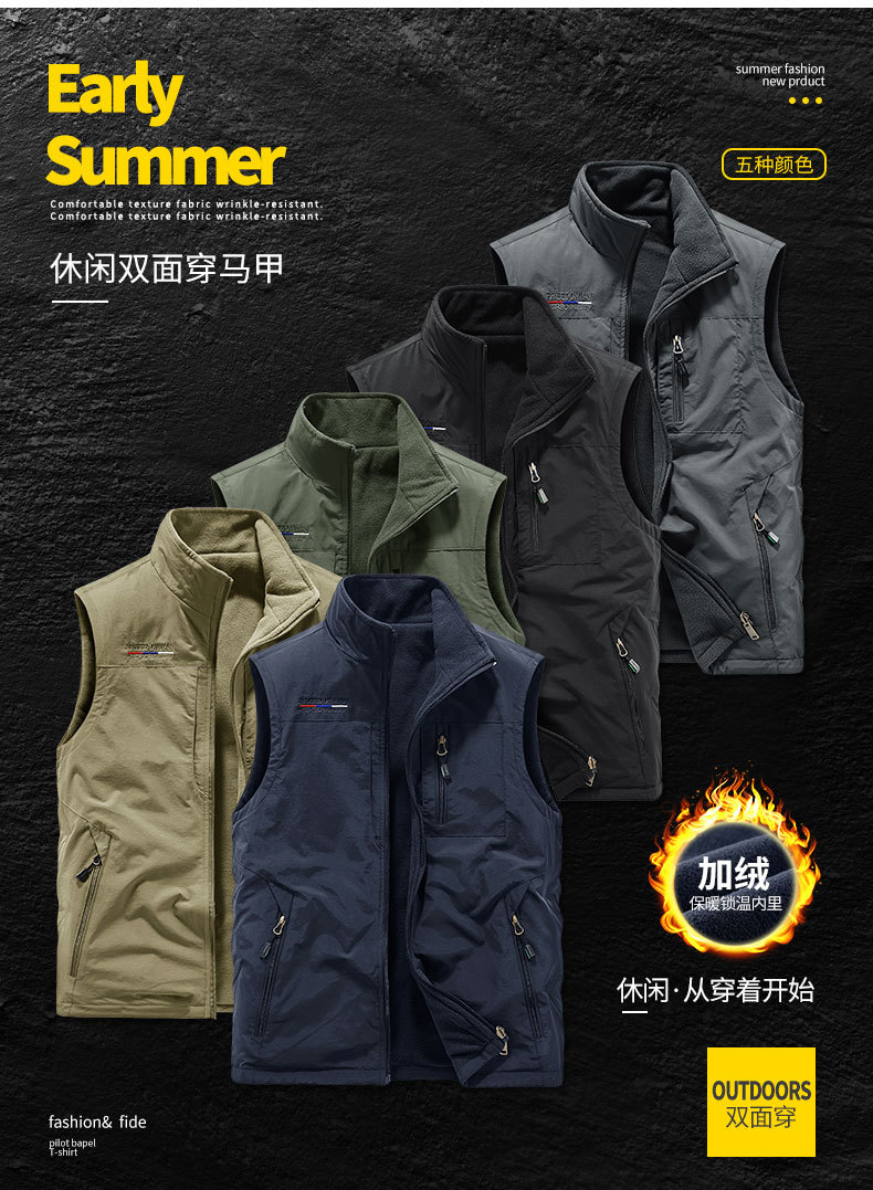 가을과 겨울 양면 조끼 남자의 야외 스포츠 양털 조끼 폴라 양털 조끼 기모 조끼 민소매 재킷