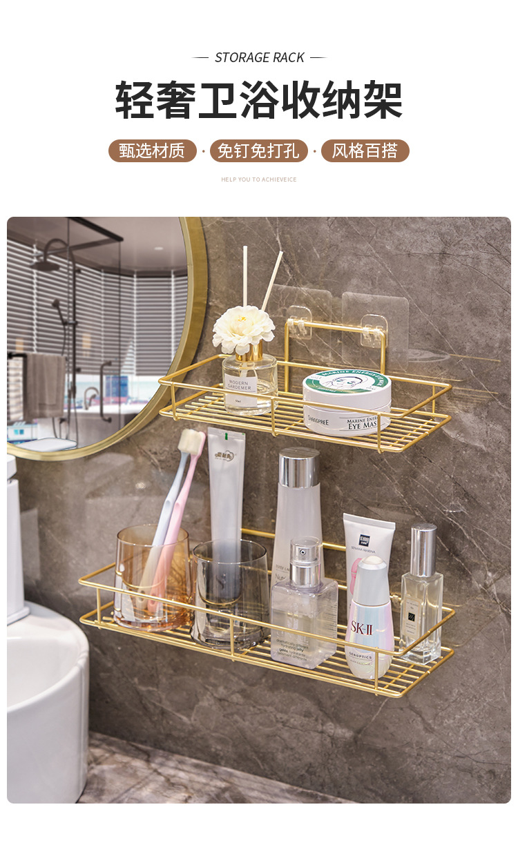 벽걸이형 욕실 수납 선반, 고급스러운 무타공 세면대 수납, 세면도구 정리대, 욕실 벽면 부착형