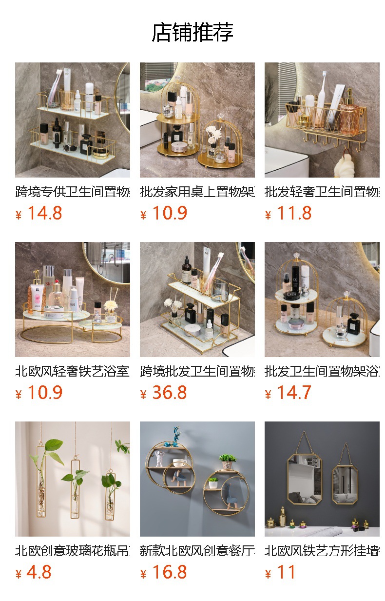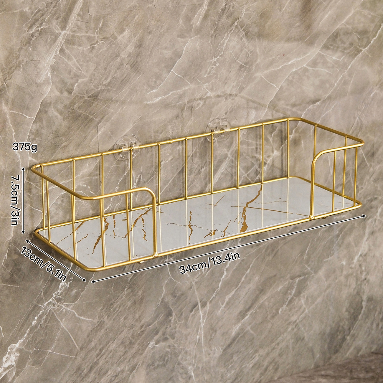 벽걸이형 욕실 수납 선반, 고급스러운 무타공 세면대 수납, 세면도구 정리대, 욕실 벽면 부착형스토어 가기