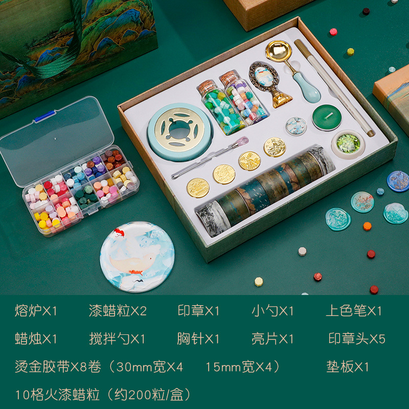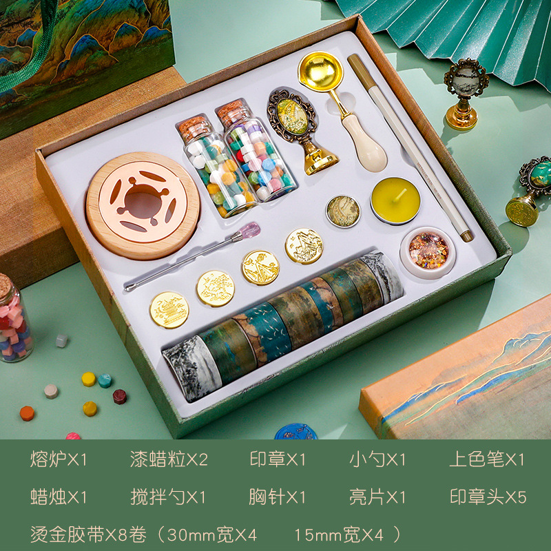 자금성 Wenchuang 화재 페인트 인감 세트 스탬프 헤드의 전체 세트 저렴한 머리 어린이 도매 Qianli Jiangshan 레트로 골동품 왁스