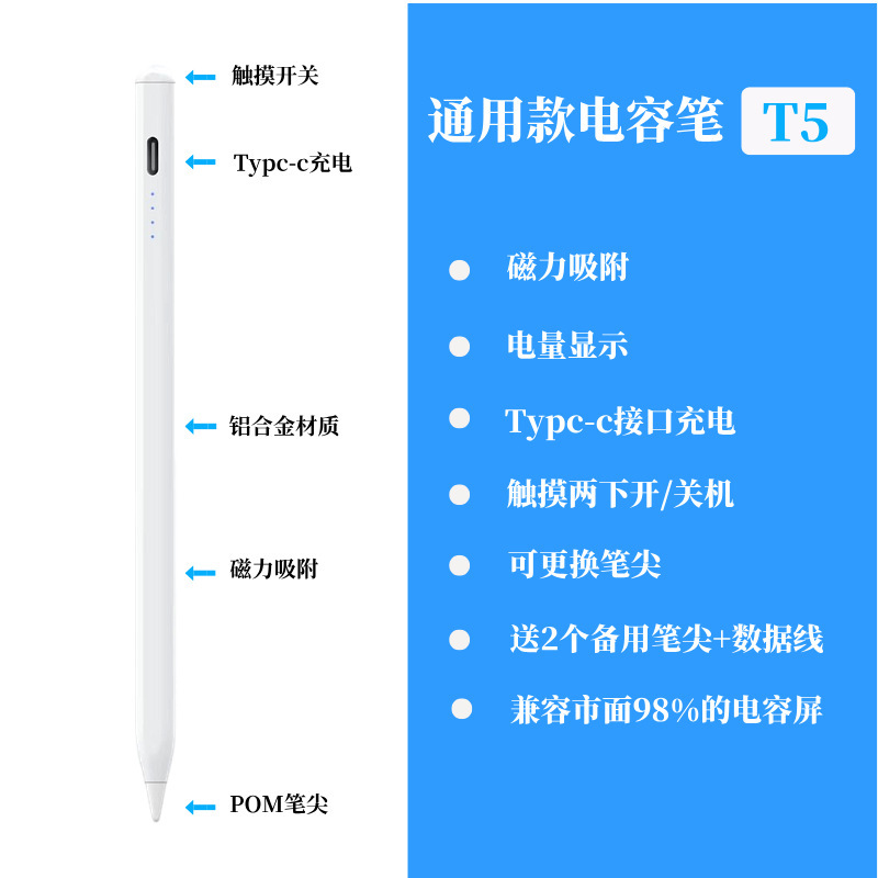 iPad Android 태블릿 휴대폰 터치 스크린 스타일러스 자기 흡입 용량성 펜에 적합한 범용 용량성 펜