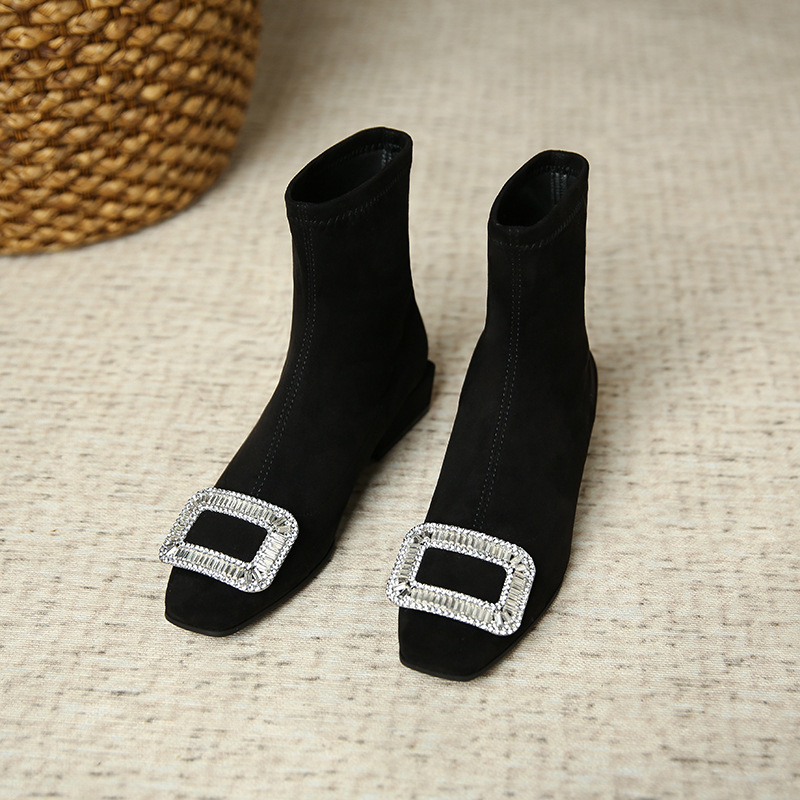 9333-2 브리티시 스웨이드 스퀘어 마틴 부츠 여성용 유럽 및 미국 크리스탈 스퀘어 버클 숏부츠 스톰프 숏부츠 여성용 숏부츠
