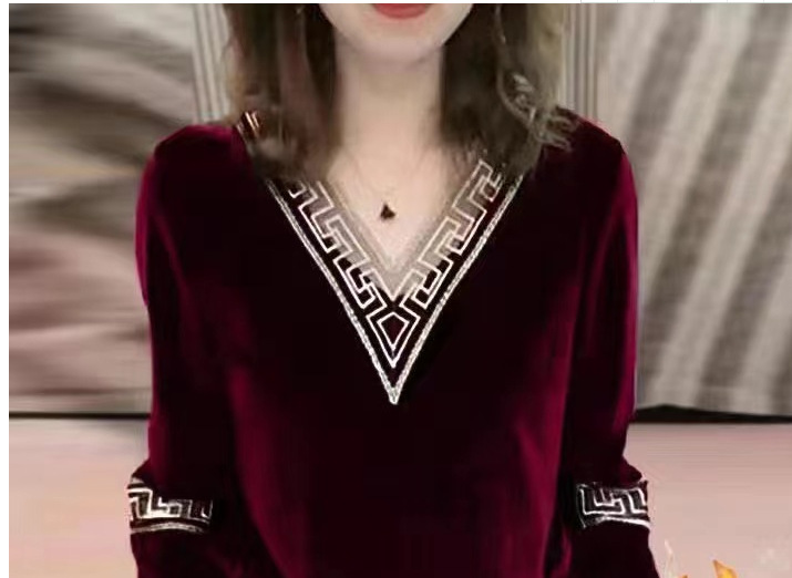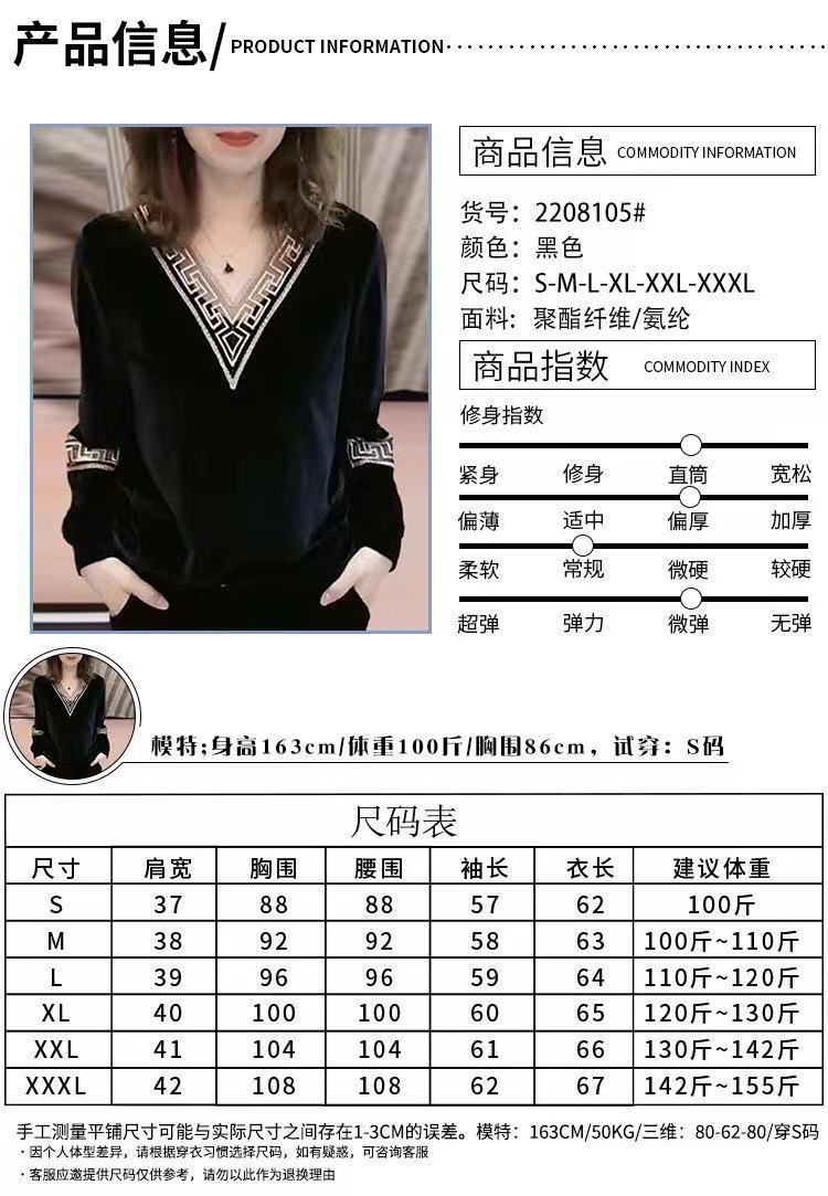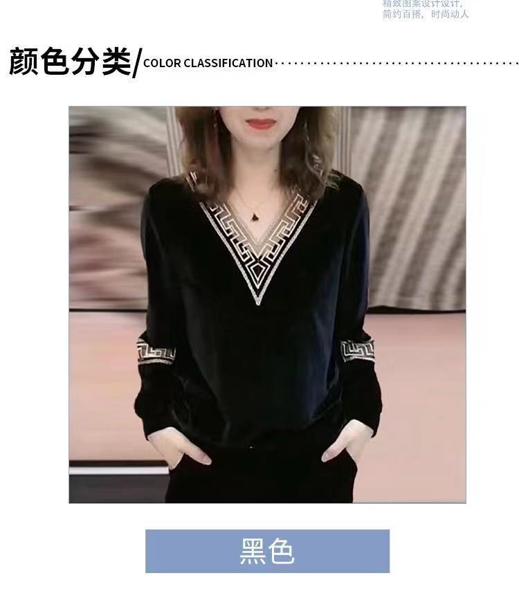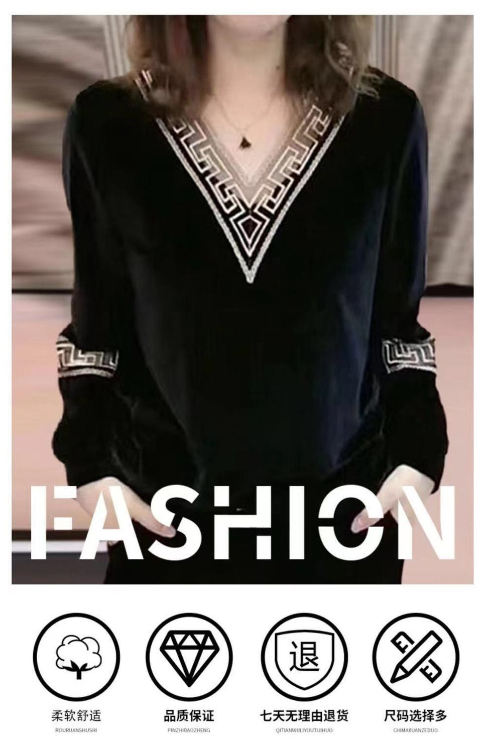 플러스 사이즈 여성의 2022 가을과 겨울 골든 벨벳 탑 통통한 자매 느슨한 V-넥 작은 셔츠 기모 티셔츠 슬리밍 베이스 셔츠스토어 가기