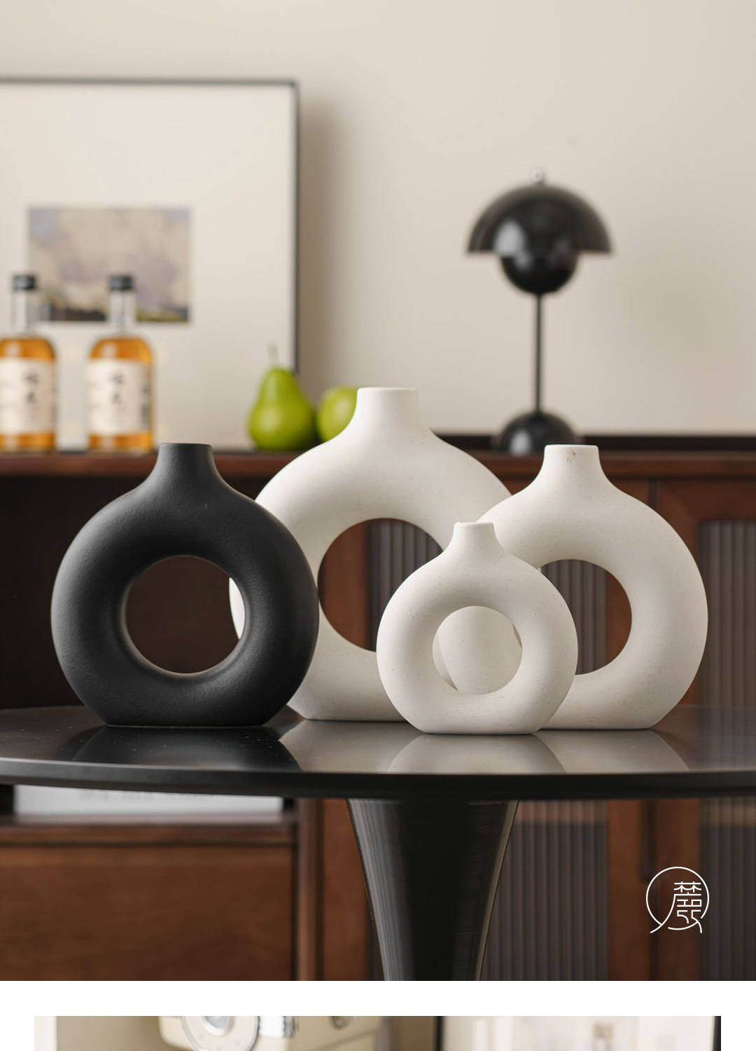 북유럽 스타일 원형 세라믹 꽃병 장식품 크리에이 티브 세라믹 공예 거실 꽃꽂이 홈 국경 폭발스토어 가기