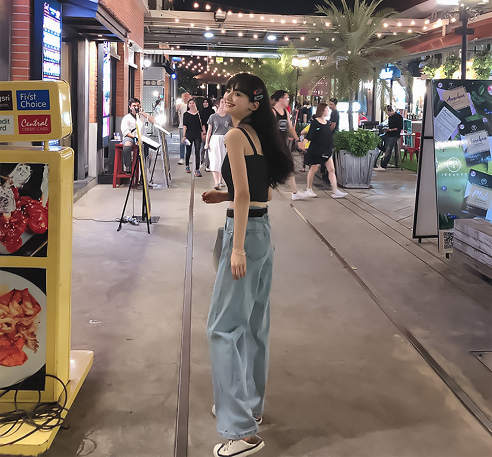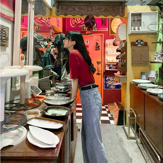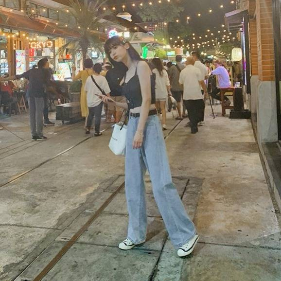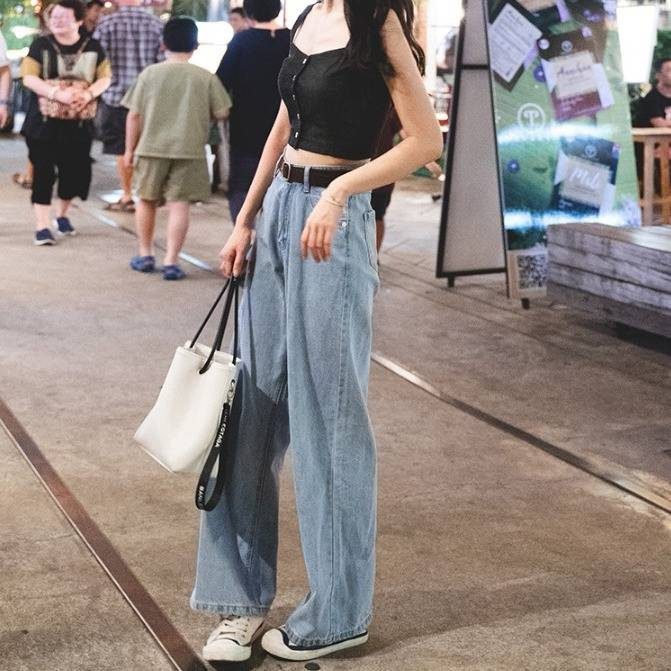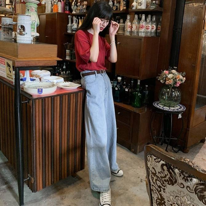 높은 허리 데님 넓은 다리 바지 여성의 느슨한 슬리밍 드레이핑 봄 2022 새로운 복고풍 *** 스트레이트 한국식 바지스토어 가기