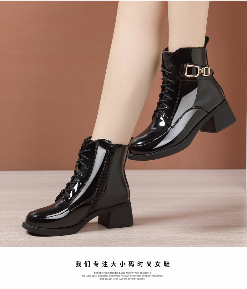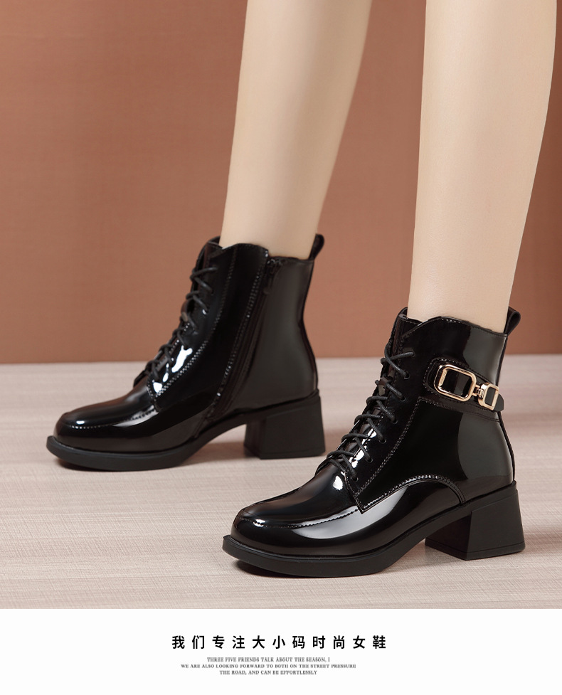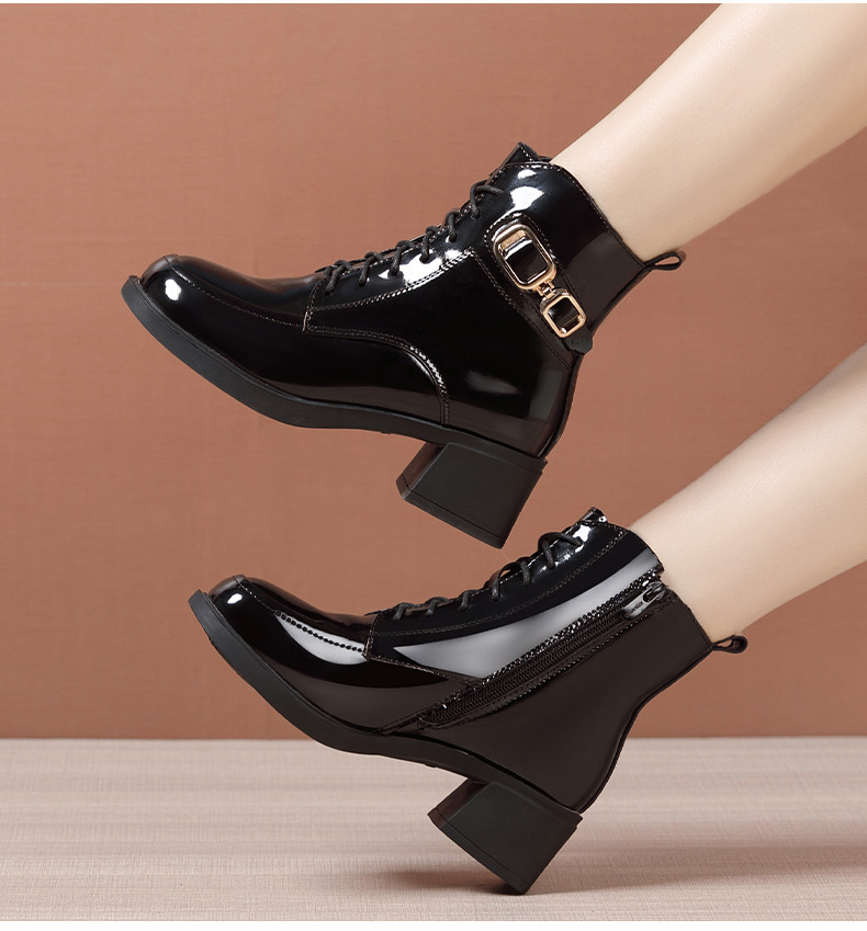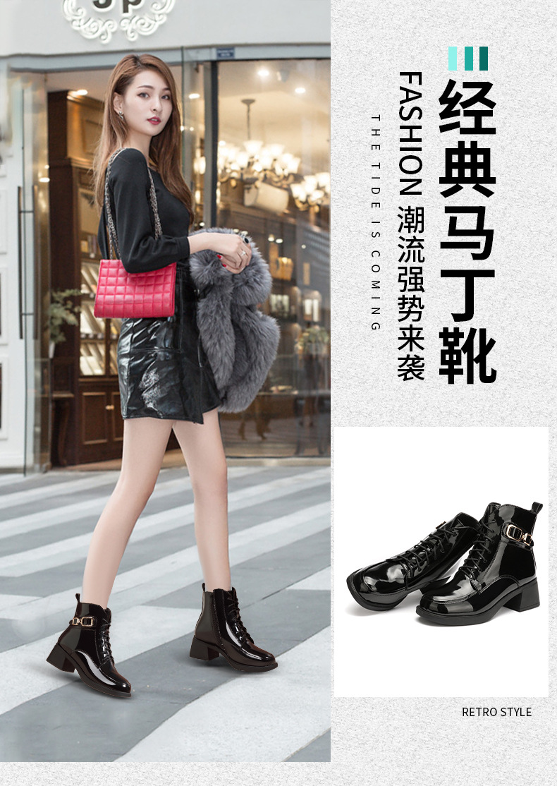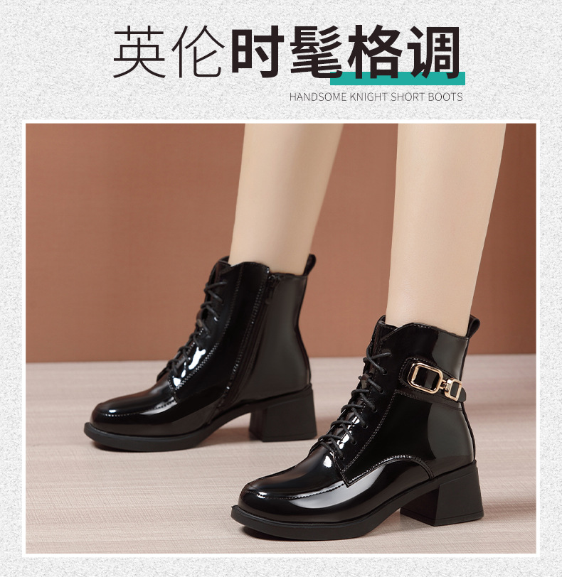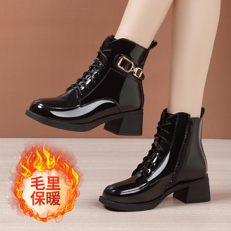 페인트 가죽 영국 스타일 두꺼운 굽 마틴 부츠 여성용 2025 신상 가을 겨울 페인트 가죽 봄 가을 단화 부츠 플리스 안감 면 부츠 짧은 부츠스토어 가기