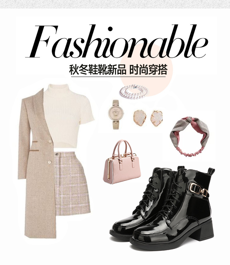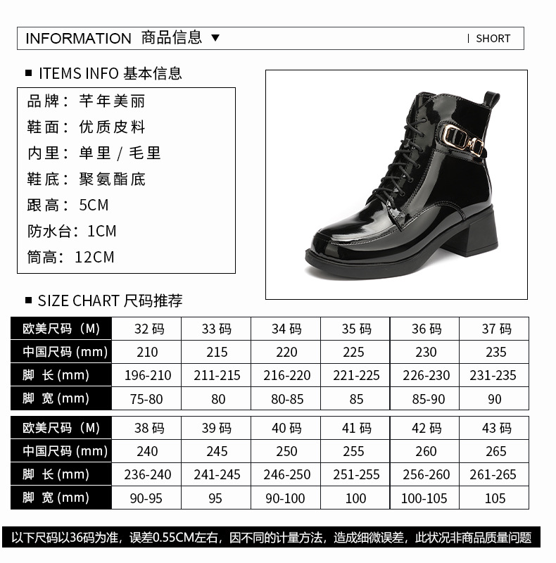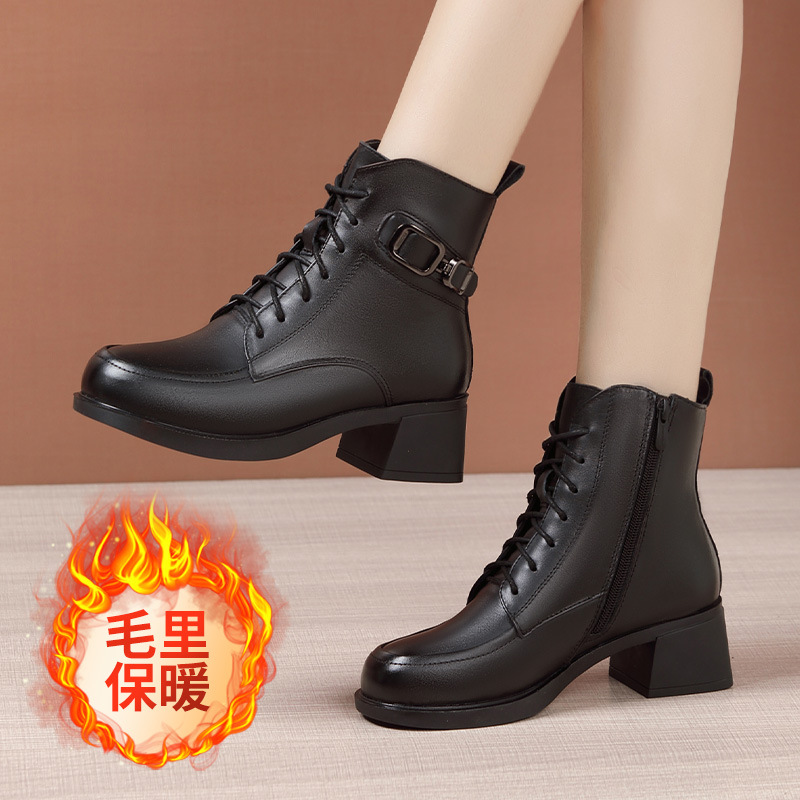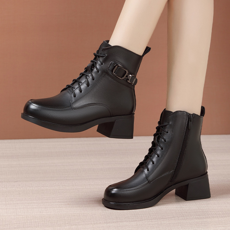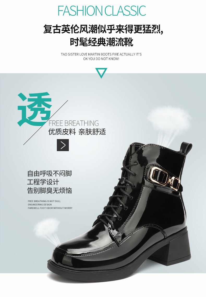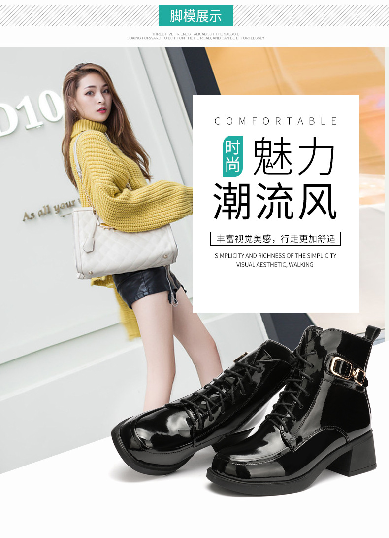 페인트 가죽 영국 스타일 두꺼운 굽 마틴 부츠 여성용 2025 신상 가을 겨울 페인트 가죽 봄 가을 단화 부츠 플리스 안감 면 부츠 짧은 부츠스토어 가기