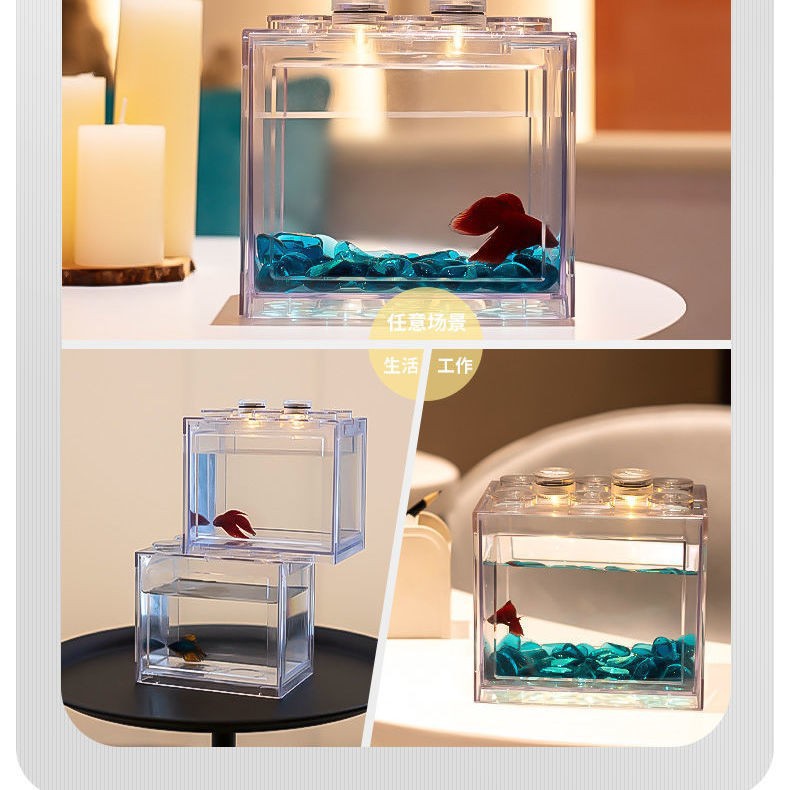 맞춤형 빌딩 블록 싸움 생선 상자 소형 어항 마이크로 생태 관상용 어항 해초 공 파충류 상자 창조적 소형 어항