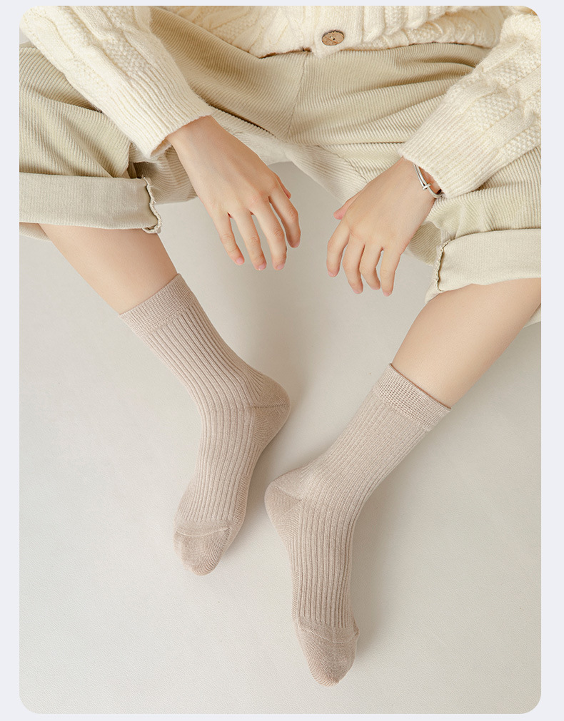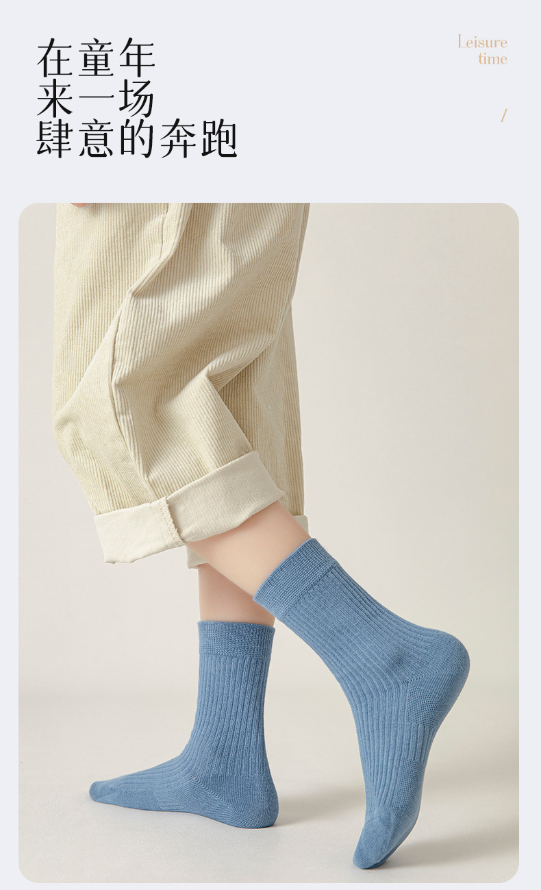 무봉제 성인용 면양말 학생용 양말 여성용 양말 남성용 단색 중목 양말 심플한 어린이 양말 봄 가을 중대형 어린이용 사계절 양말