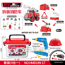 跨境新品儿童DIY拆装消防车工程车套装电钻螺丝拼装组装玩具汽车