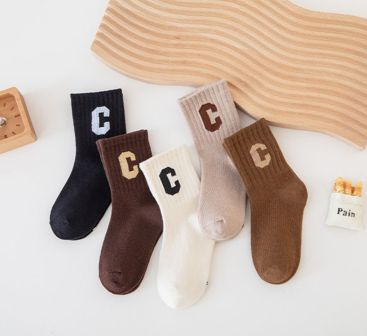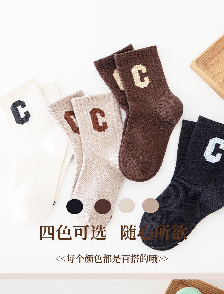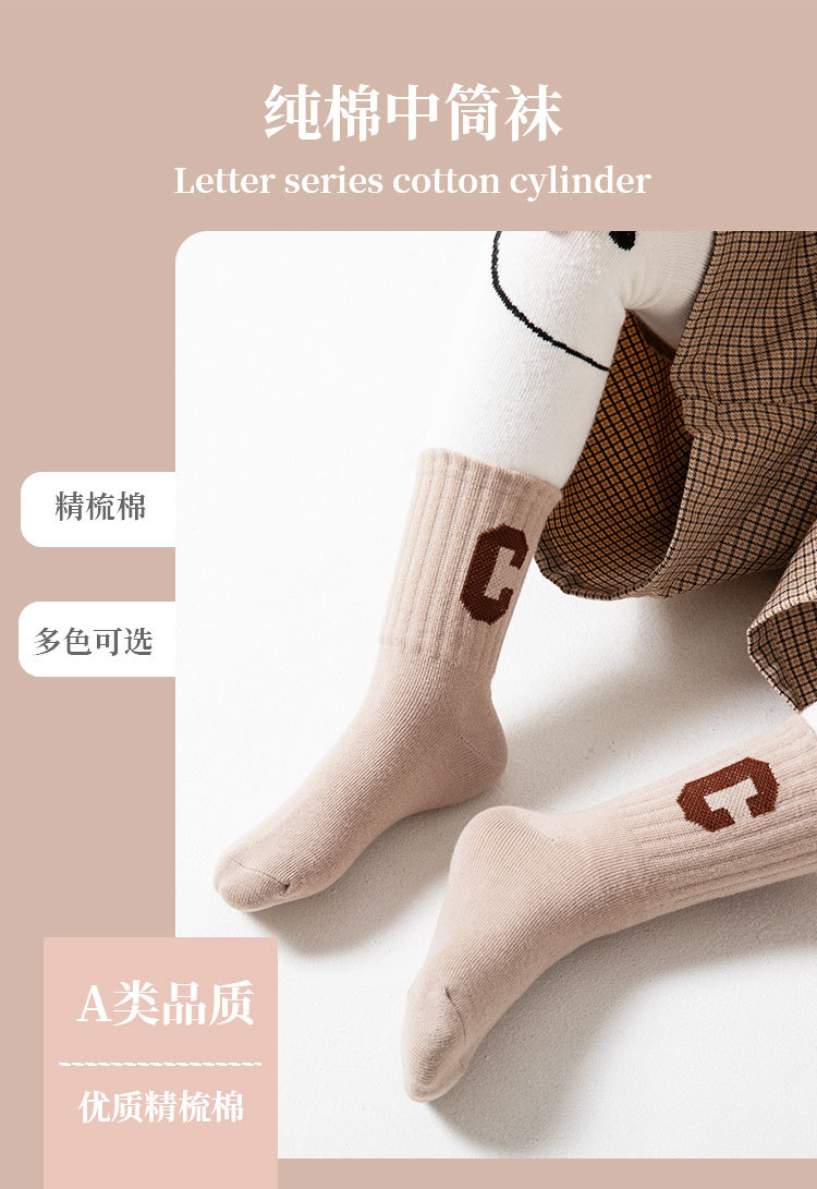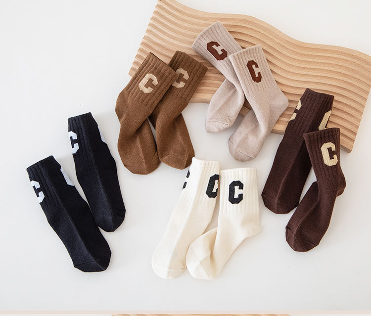 2022 가을과 겨울 C 어린이 양말 한국 두꺼운 온라인 인기 소년 소녀 봄과 가을 맞춤형 스포츠 트렌디 한 아동면 양말