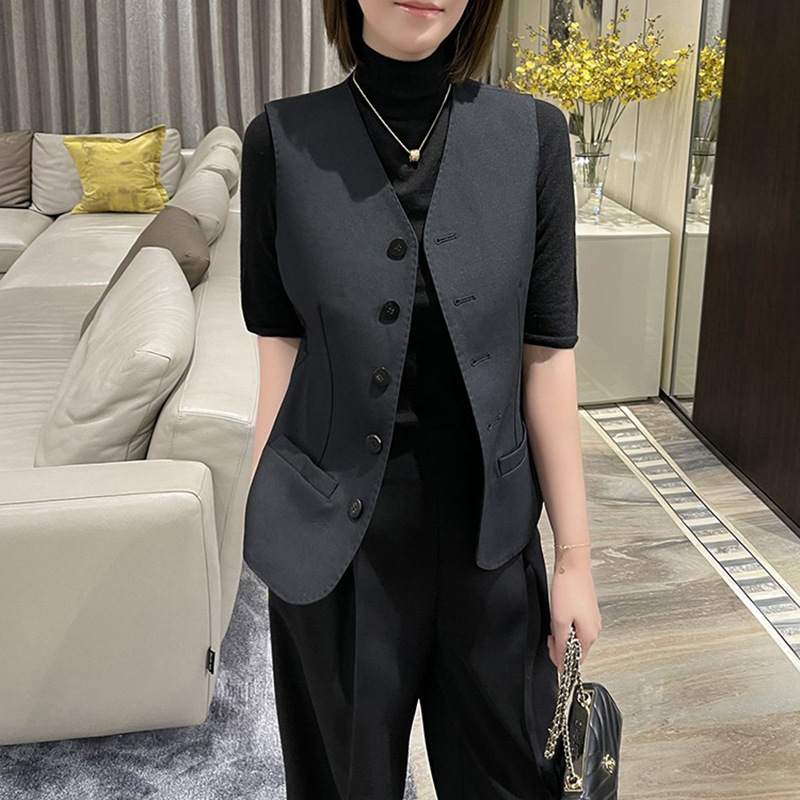 新款 羊毛牛津纺 真丝内衬 马甲女显瘦无袖外搭女