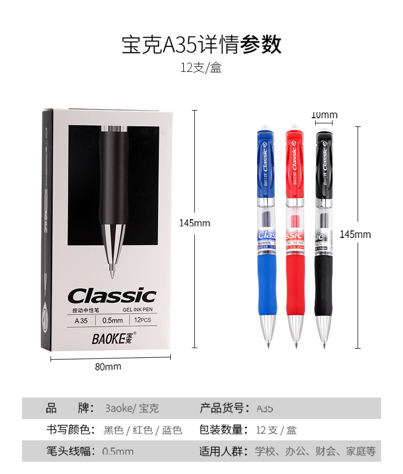 Baoke A35 프레스 젤 펜 비즈니스 사무실 프레스 사인 펜 학생 시험 브러시 쓰기 펜 도매스토어 가기