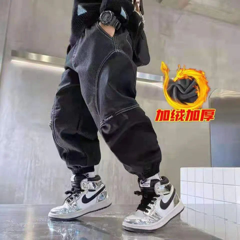 남아용 청바지 봄 가을 2025 신상 스타일리시한 플리스 안감 여아용 아동용 스플라이스 캐주얼 팬츠 중대형 아동용 팬츠 트렌디한 스타일