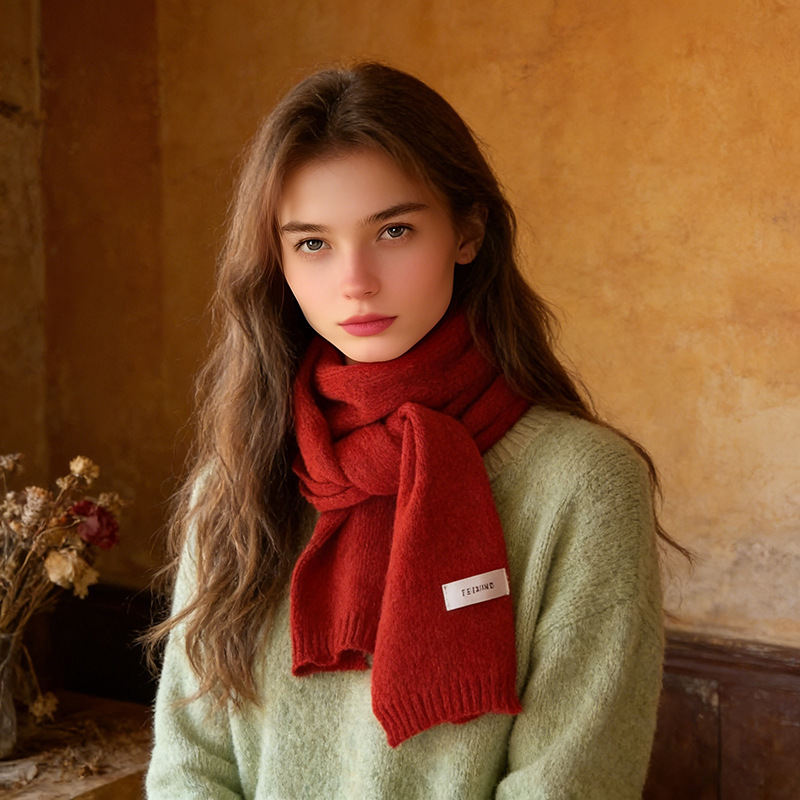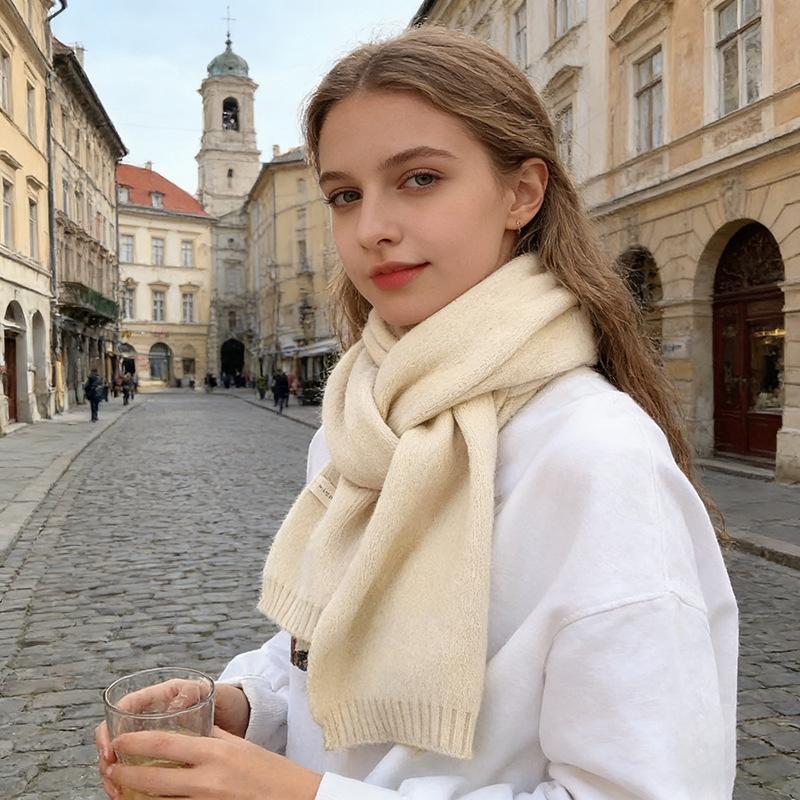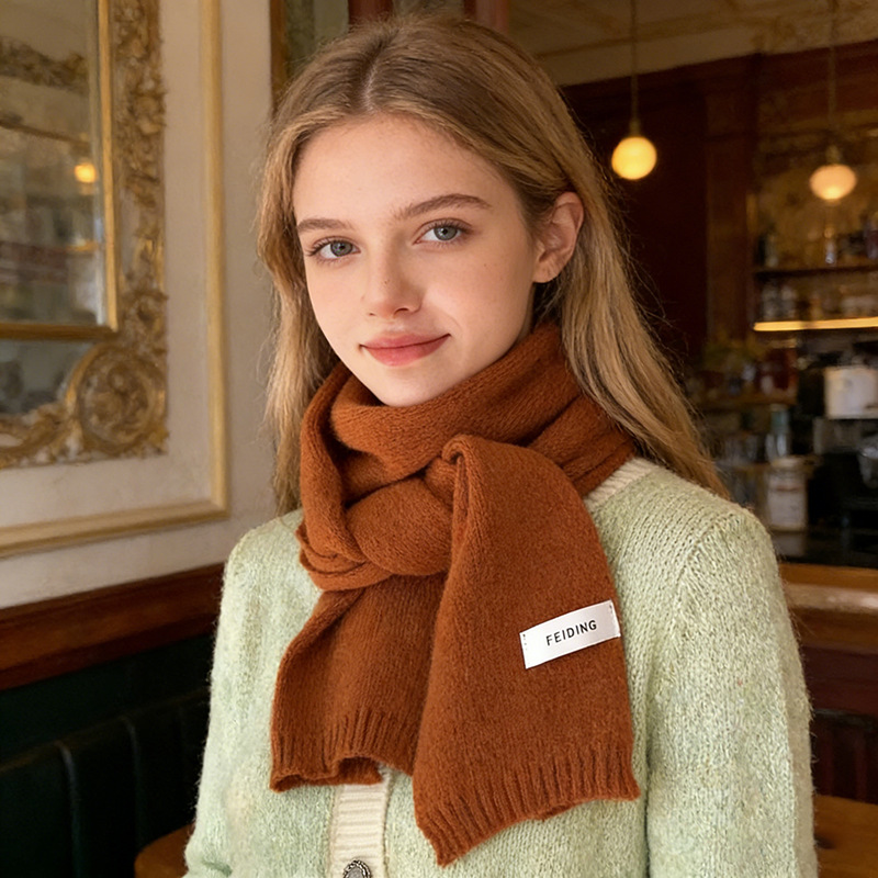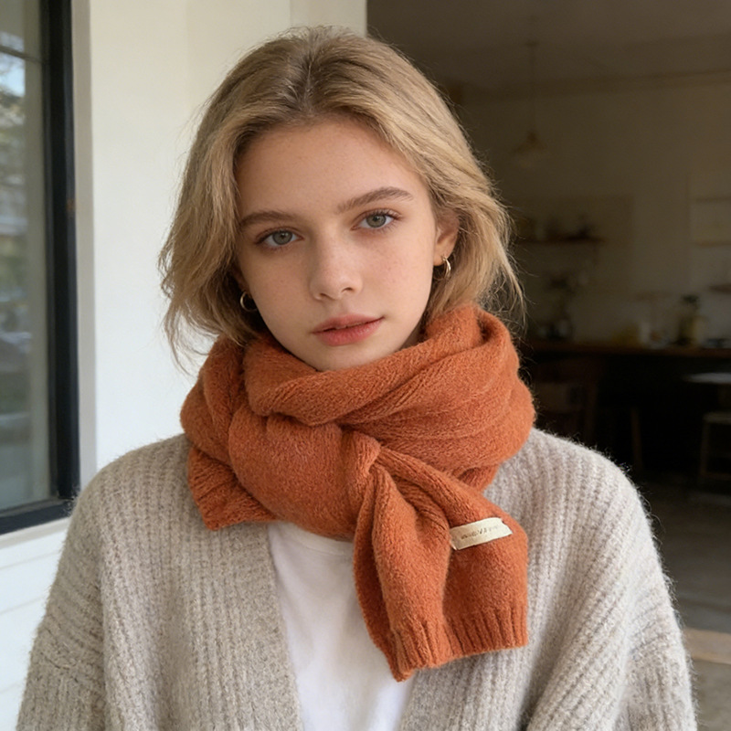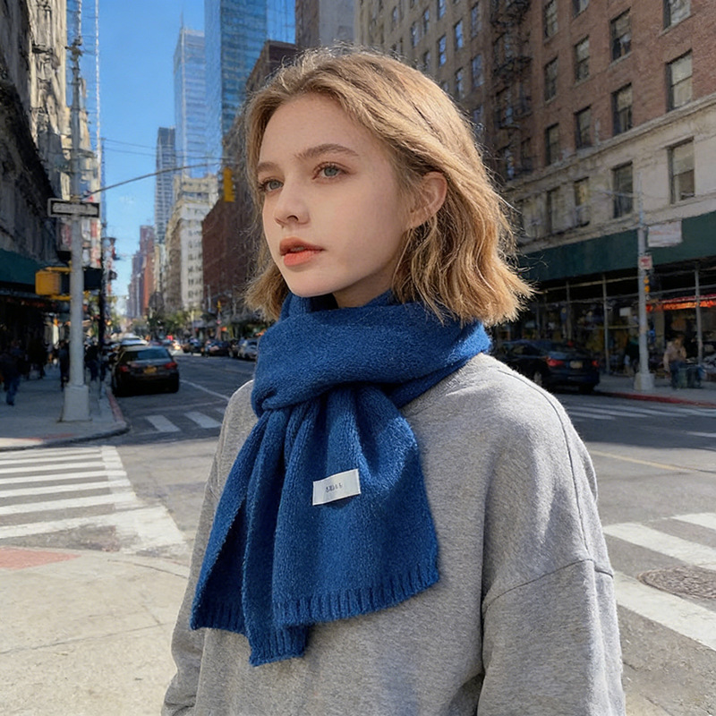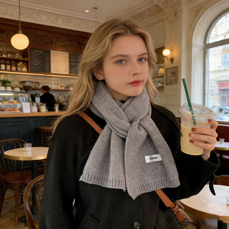 인터넷 인기 상품, 무지 니트 스카프, 가을 겨울 신상, 학생 및 커플용 다용도 따뜻한 스몰 스카프 도매