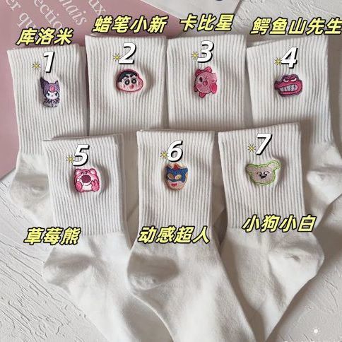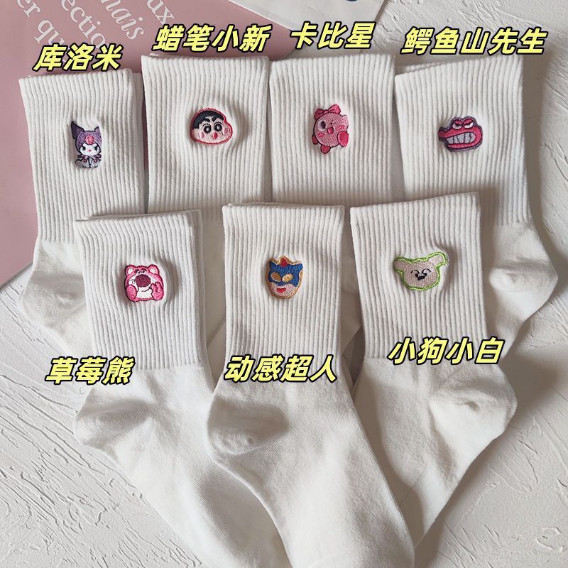 일본식 면 양말 여성용 미디엄 사이즈 인 트렌디 올 매치 자수 커플 화이트 양말 스포츠 양말 귀여운 양말스토어 가기