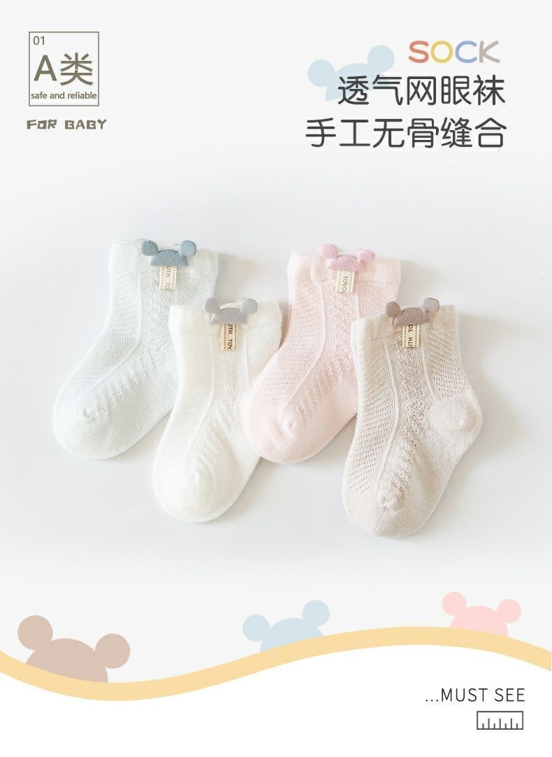 아기 양말 봄과 여름 얇은 아기 봄과 가을 신생아 미드 튜브 양말 메쉬 통기성 한국 양말스토어 가기