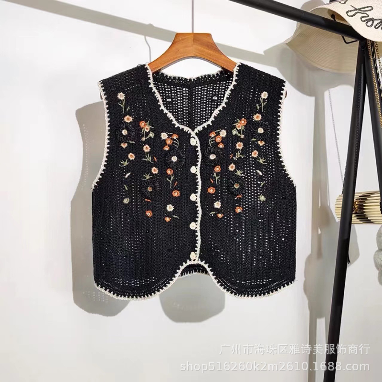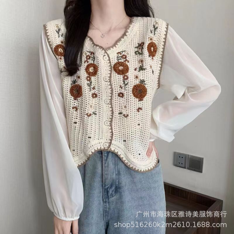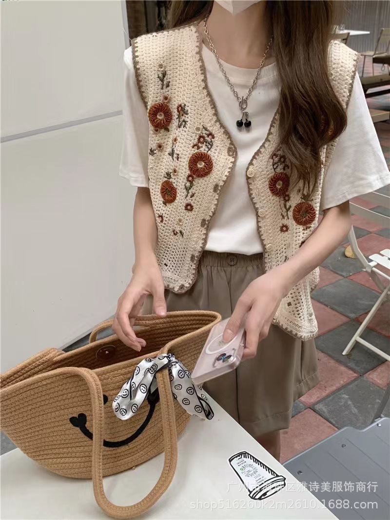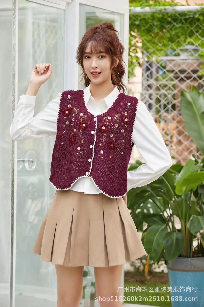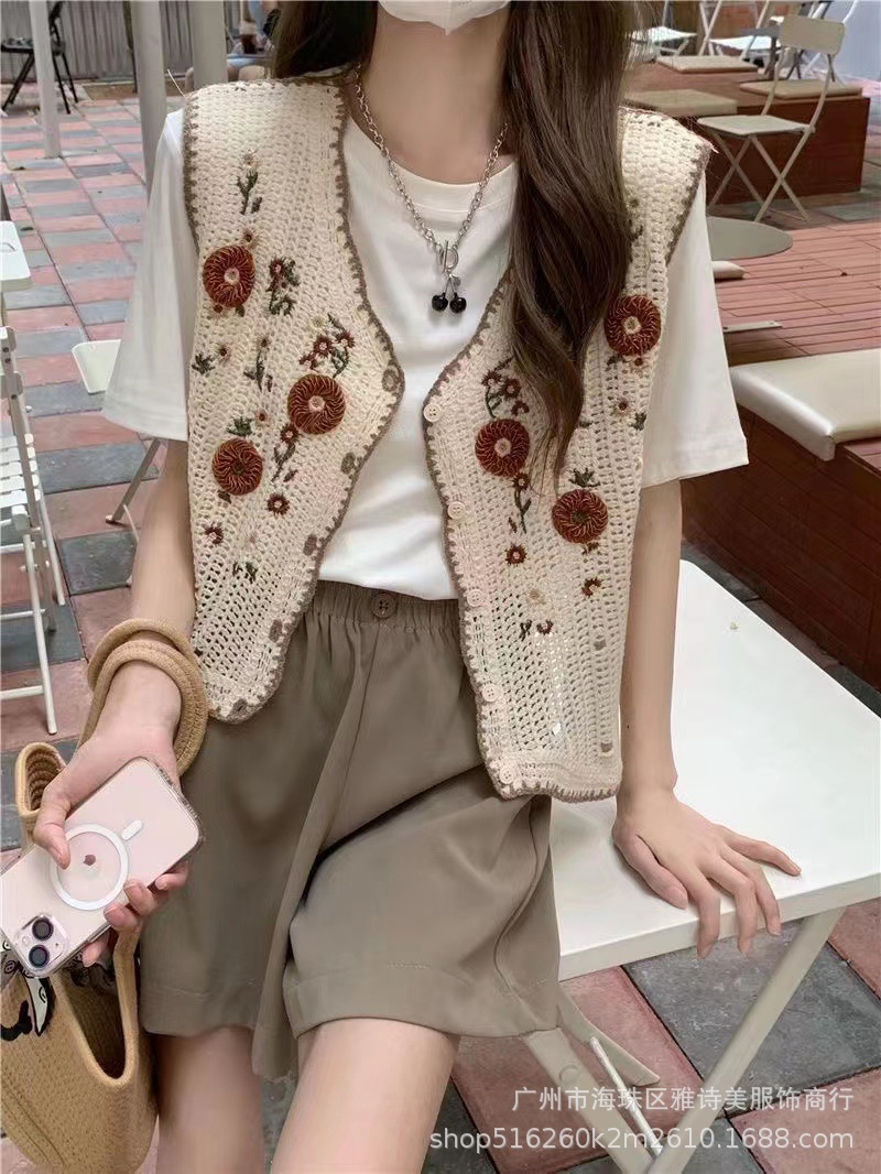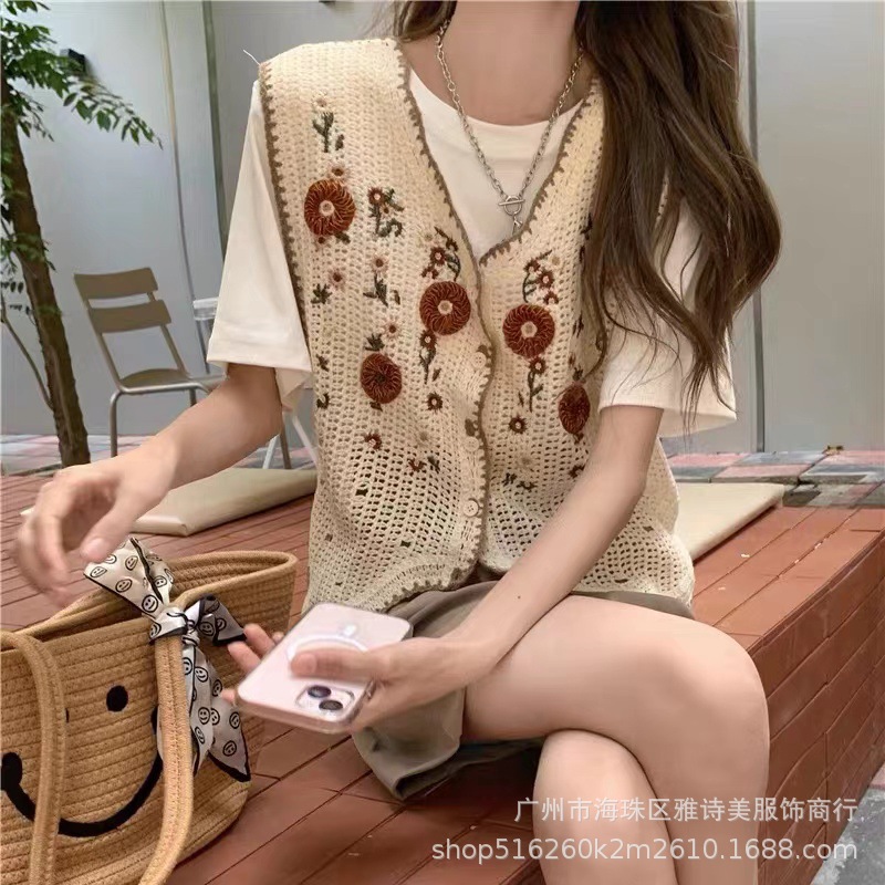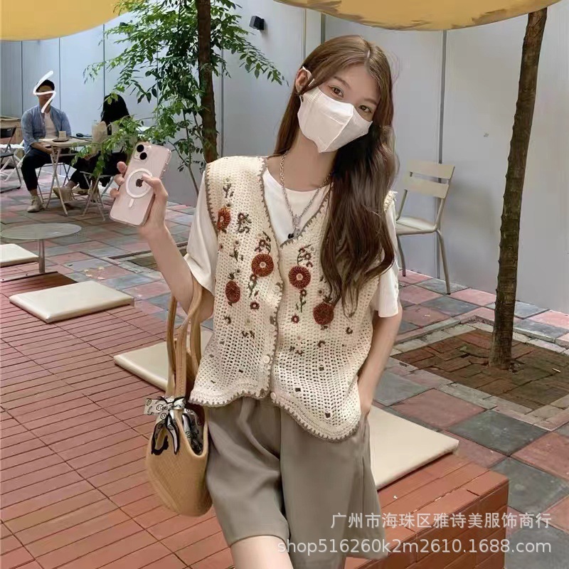 달콤한 스타일 중공 니트 스택 조끼 여성의 디자인 틈새 느슨한 유행 프랑스 크로 셰 뜨개질 모든 매치 탑 트렌디스토어 가기
