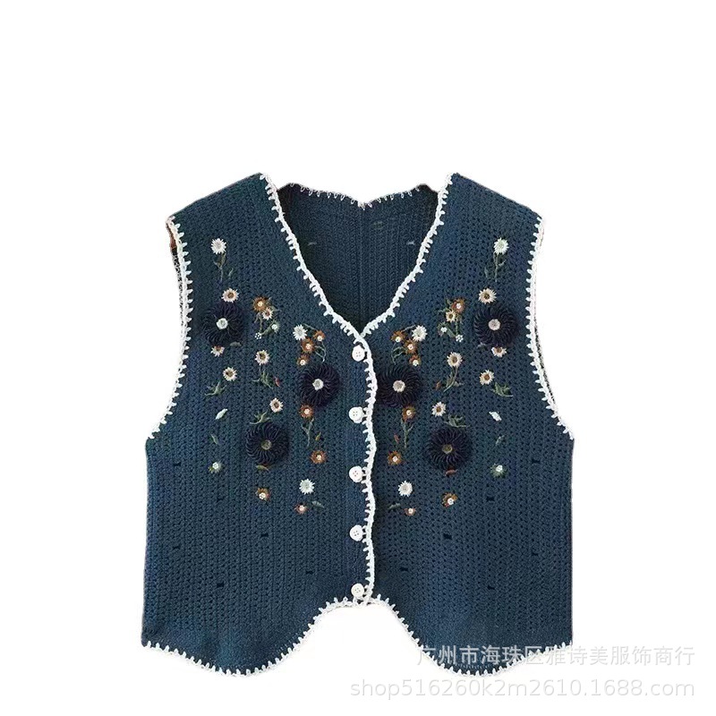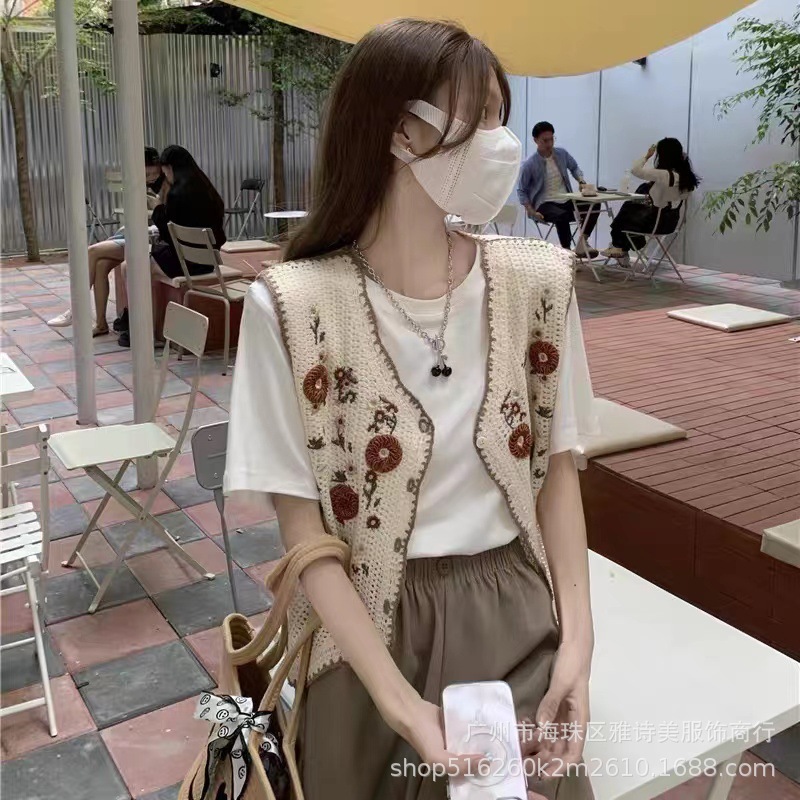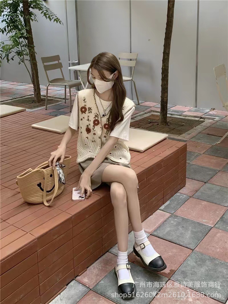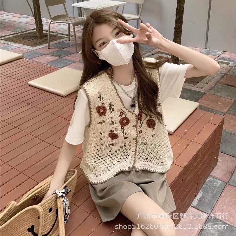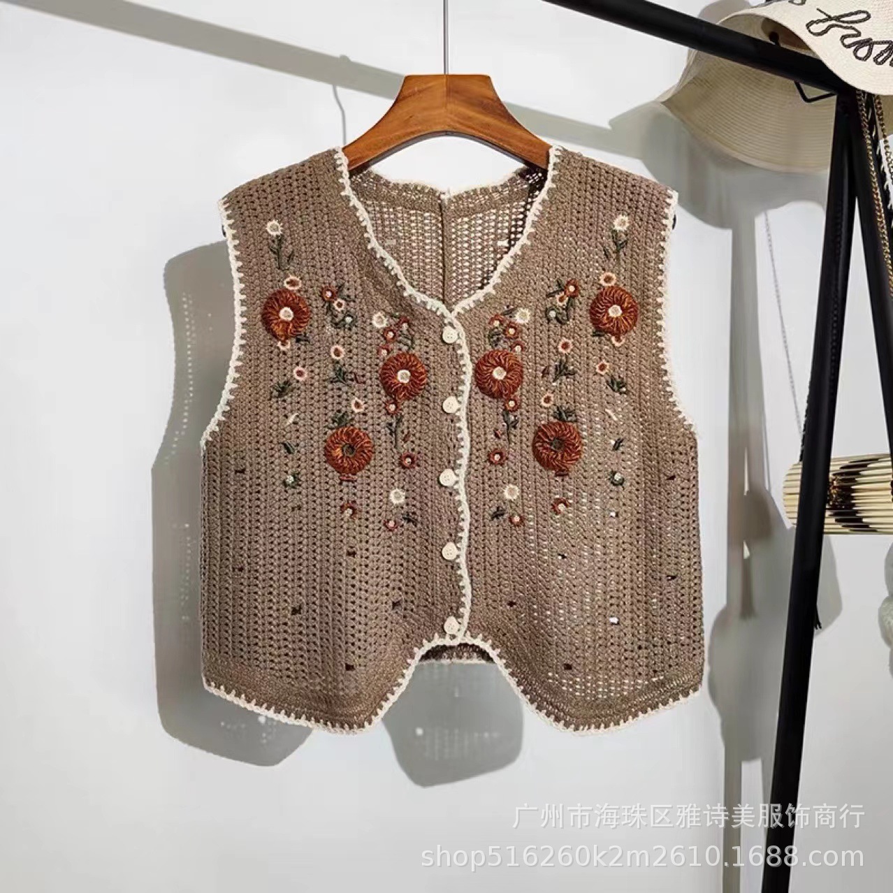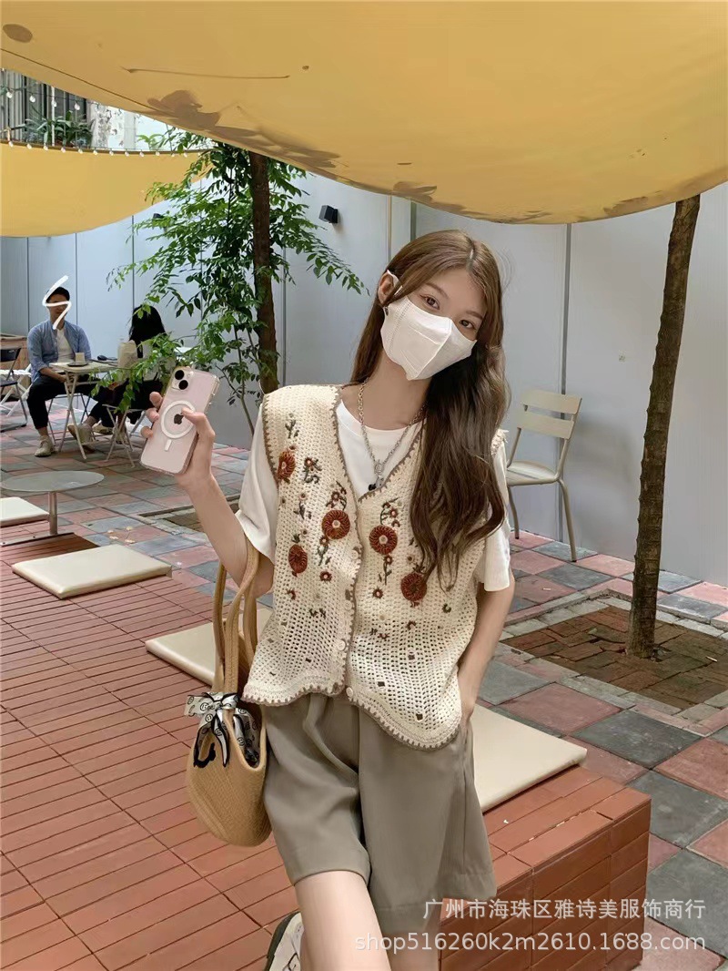 달콤한 스타일 중공 니트 스택 조끼 여성의 디자인 틈새 느슨한 유행 프랑스 크로 셰 뜨개질 모든 매치 탑 트렌디스토어 가기