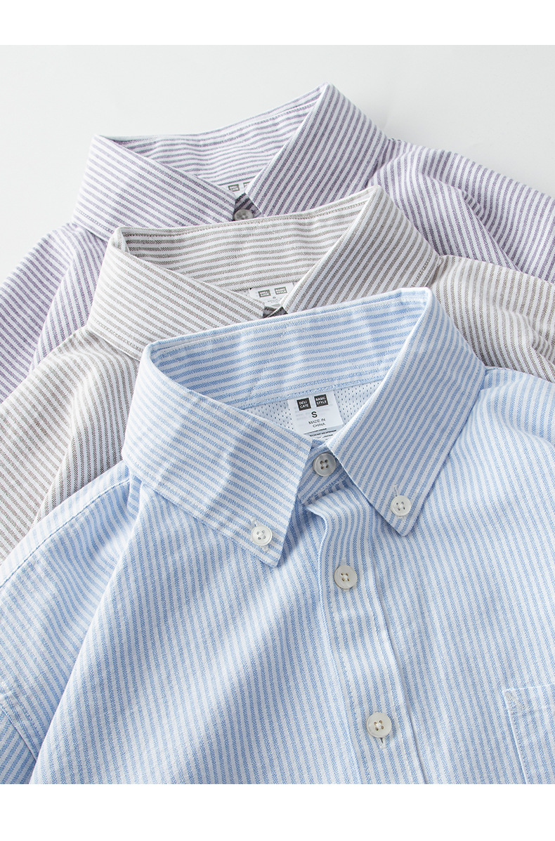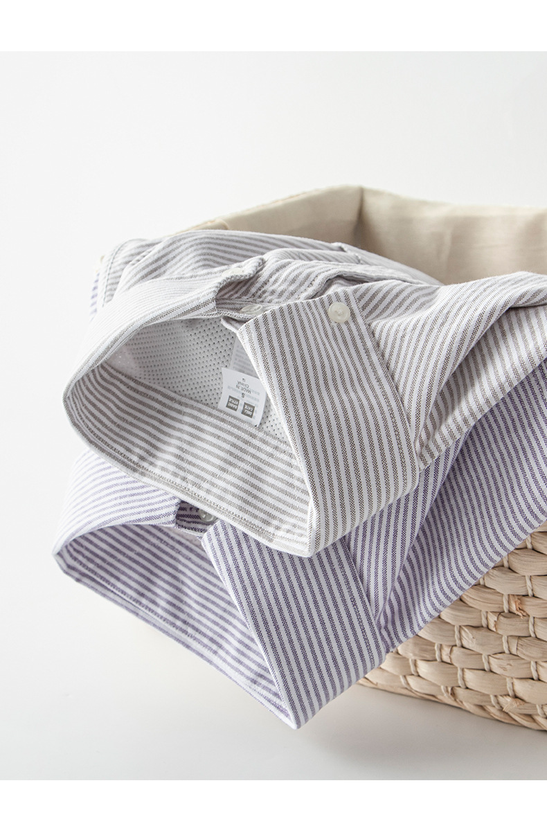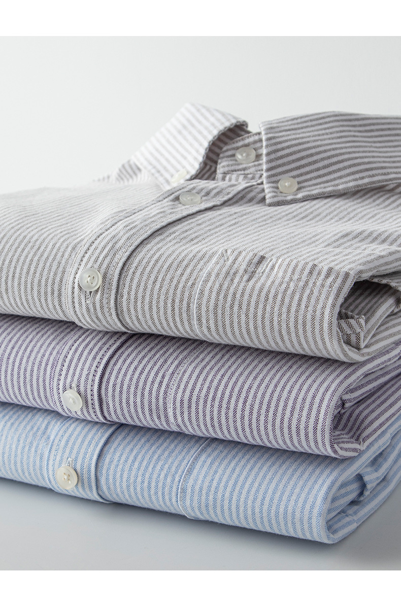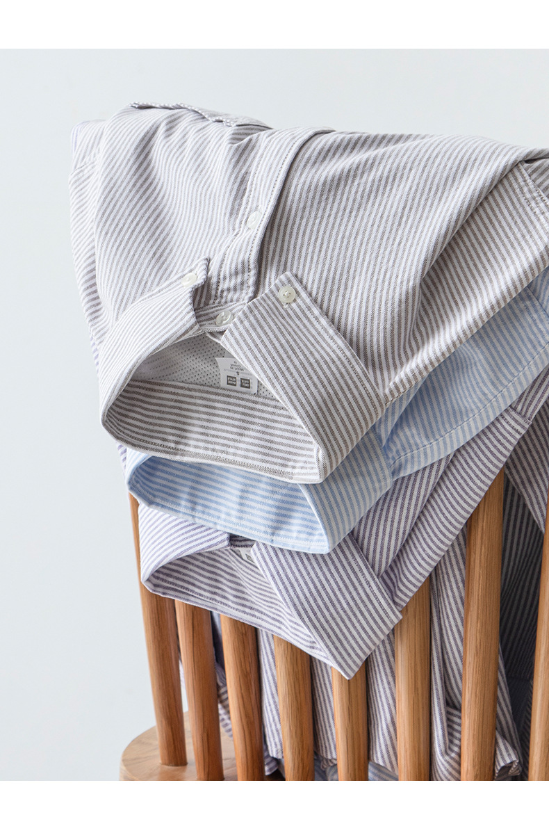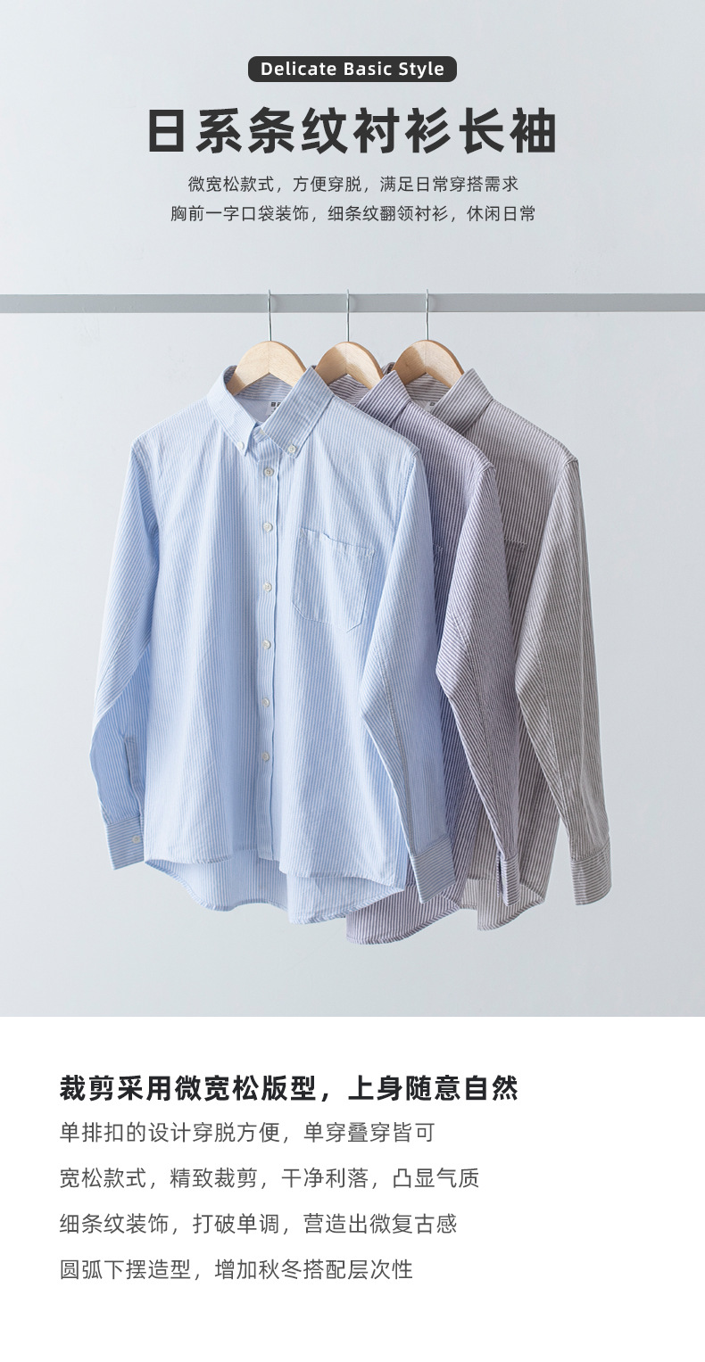 스트라이프 셔츠 긴팔 남성용 순면 세로 스타일 신선한 스타일 라펠 탑 캐주얼 일본식 심플 루즈한 셔츠스토어 가기