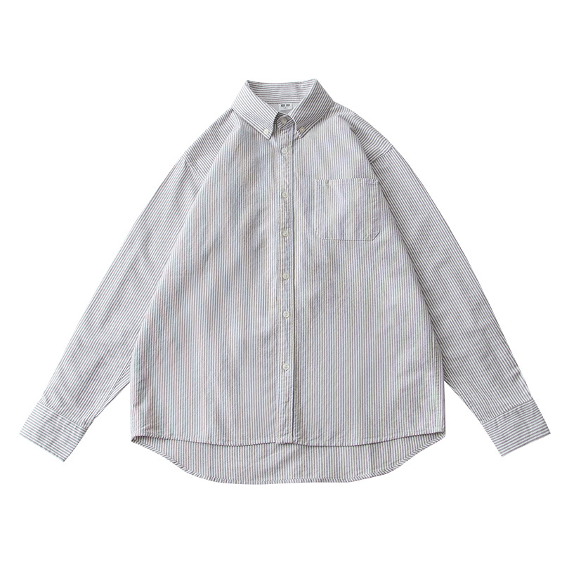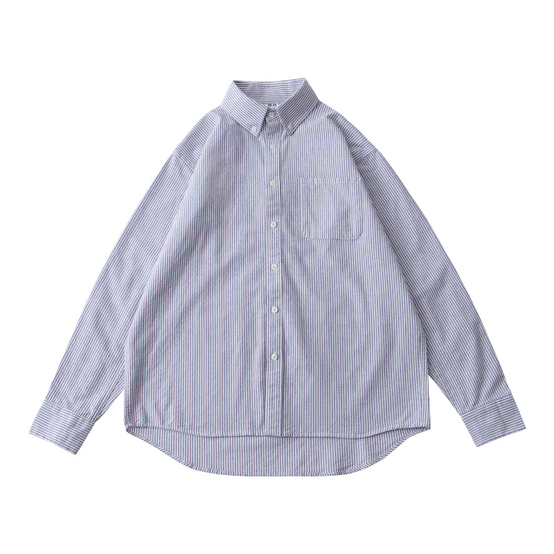 스트라이프 셔츠 긴팔 남성용 순면 세로 스타일 신선한 스타일 라펠 탑 캐주얼 일본식 심플 루즈한 셔츠