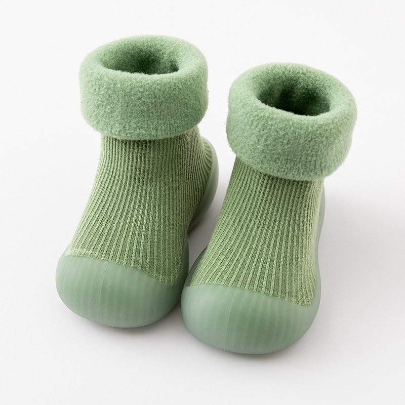 가을과 겨울 아기의 단색 부드러운 밑창 미끄럼 방지 유아 신발 어린이 중간 튜브 실내 눈 따뜻한 양말 신발 기모 두껍게