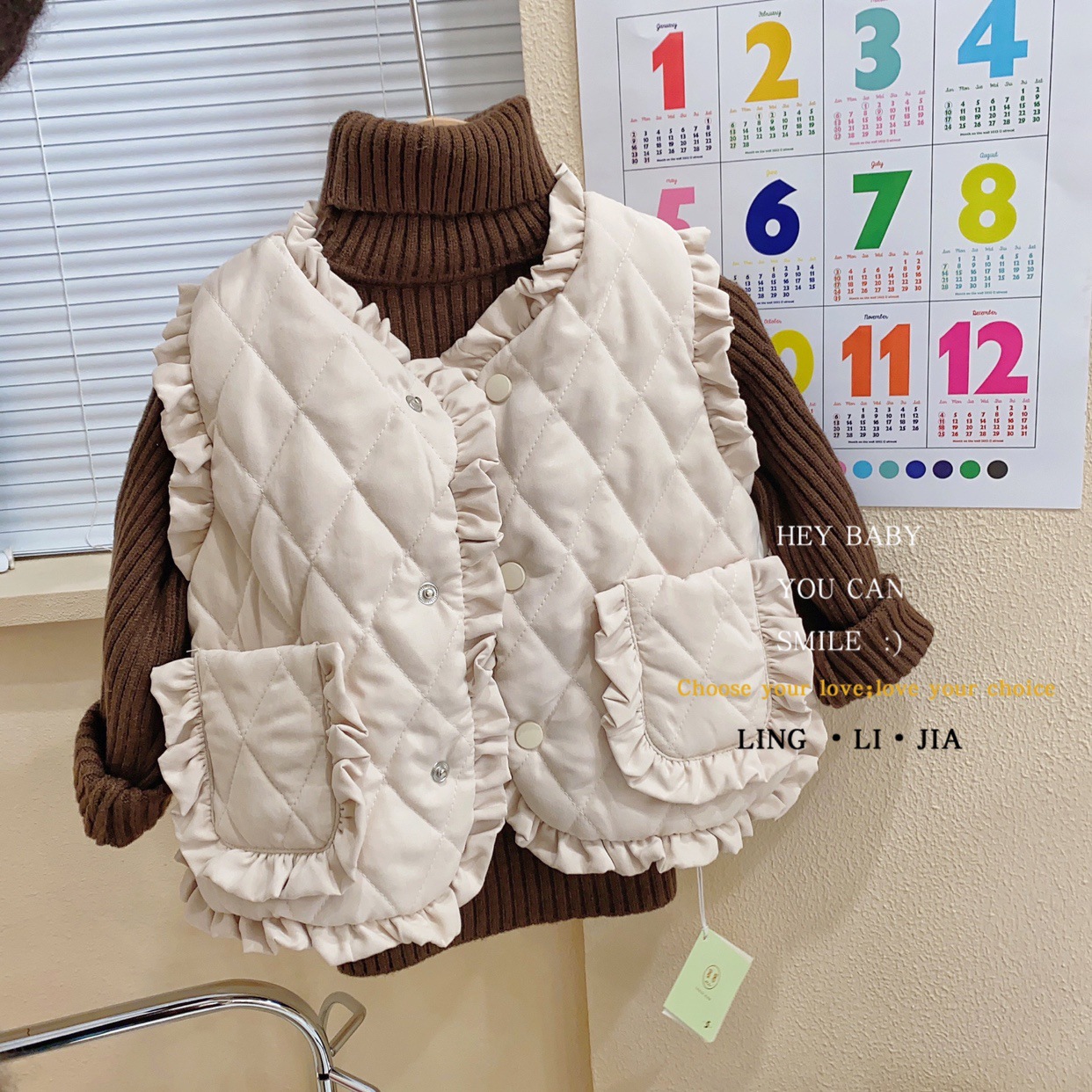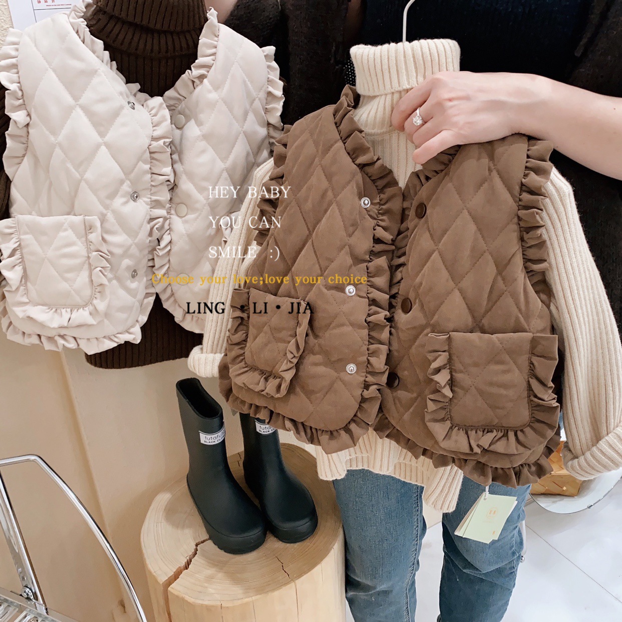 소녀 가을과 겨울 옷 아기 조끼 겉옷 2023 새로운 가을 어린이 레이스 조끼 기모 따뜻한 옷 모든 일치스토어 가기