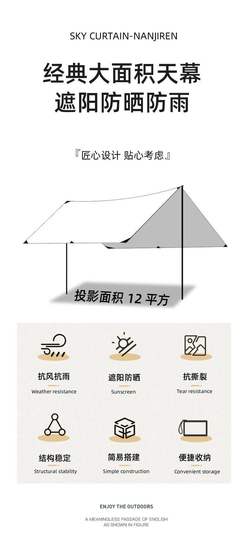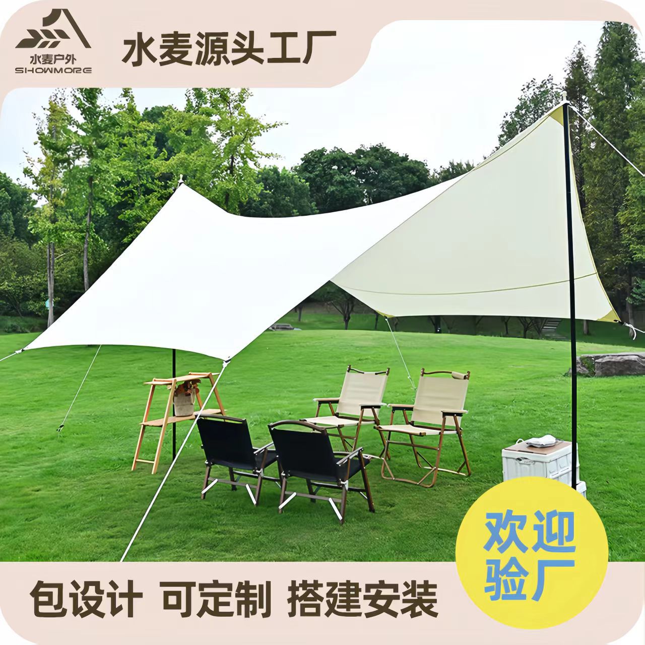 Shuimai 사각 캐노피 텐트 야외 면 천 태양 보호 캠핑 휴대용 캠핑 모양 캠핑 대형 천막 보호