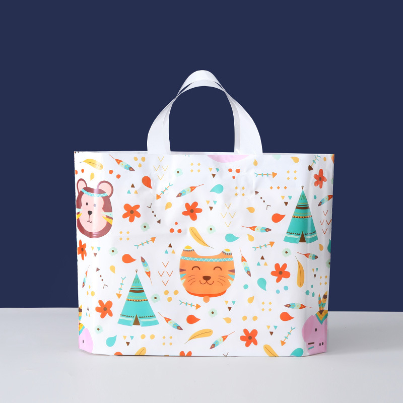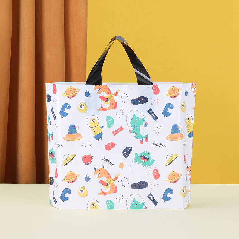 의류 매장 가방 도매 재고 두꺼운 어린이 플라스틱 핸드백 페 컬러 인쇄 옷 비닐 가방 인쇄 로고