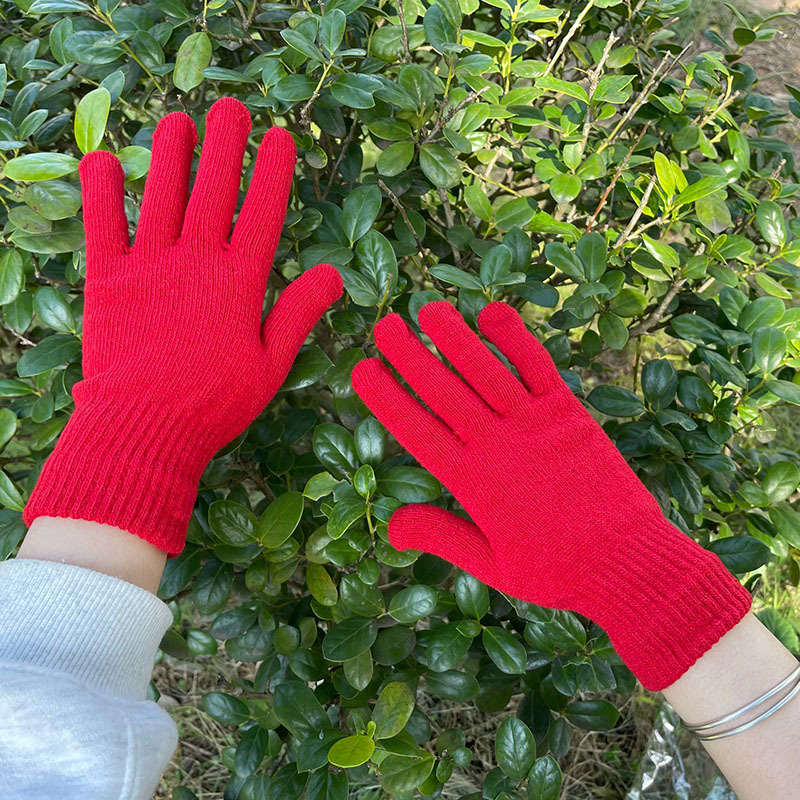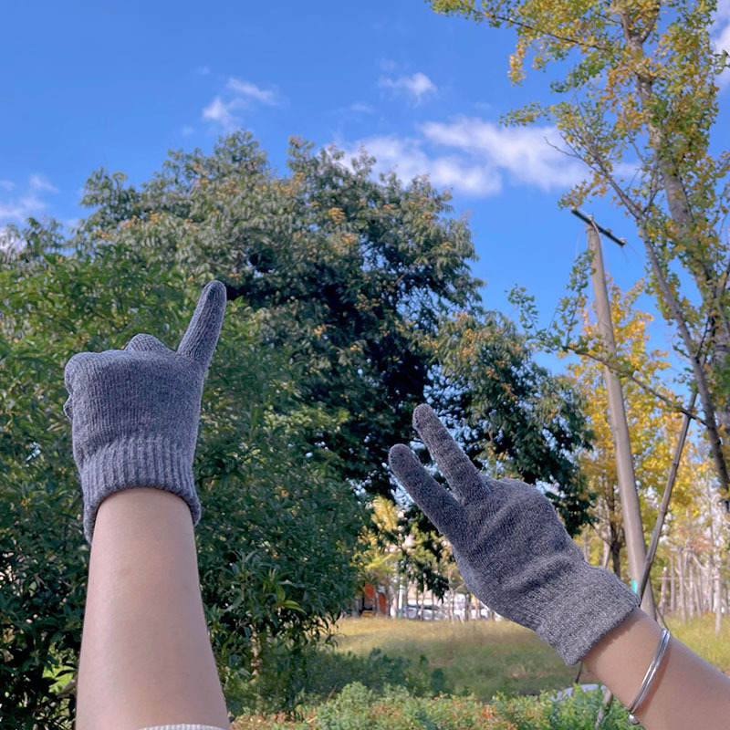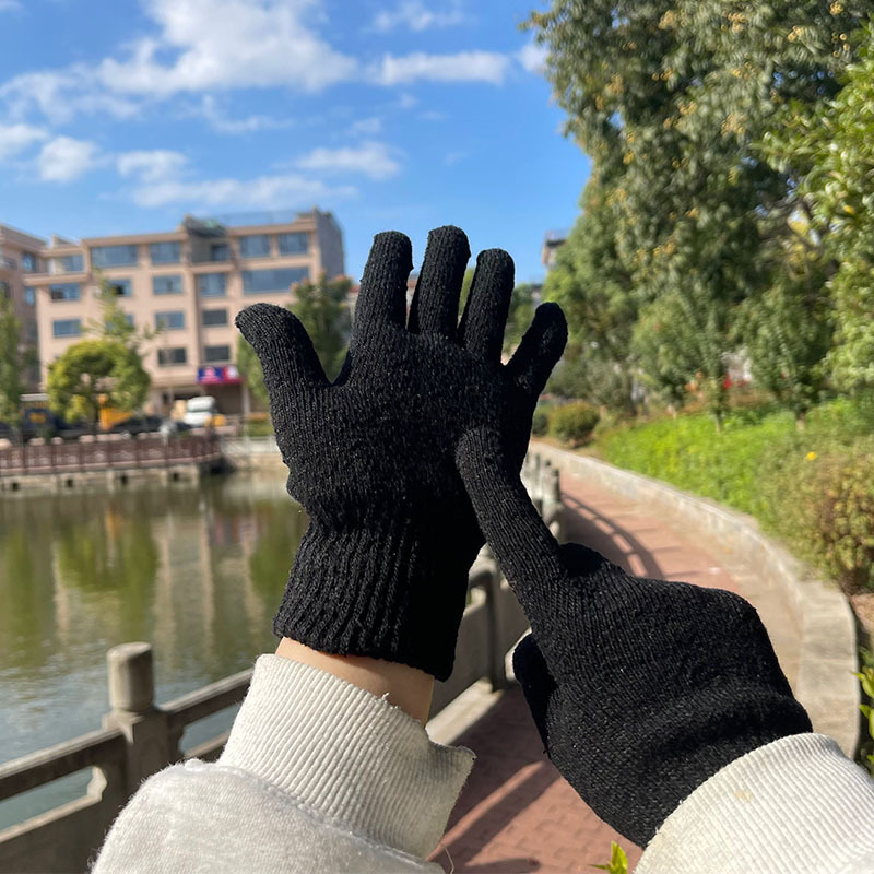 가을과 겨울에 남성과 여성을위한 니트 장갑 따뜻한 기모 두꺼운 탄성 양모 단색 5 손가락 학생 승마 장갑