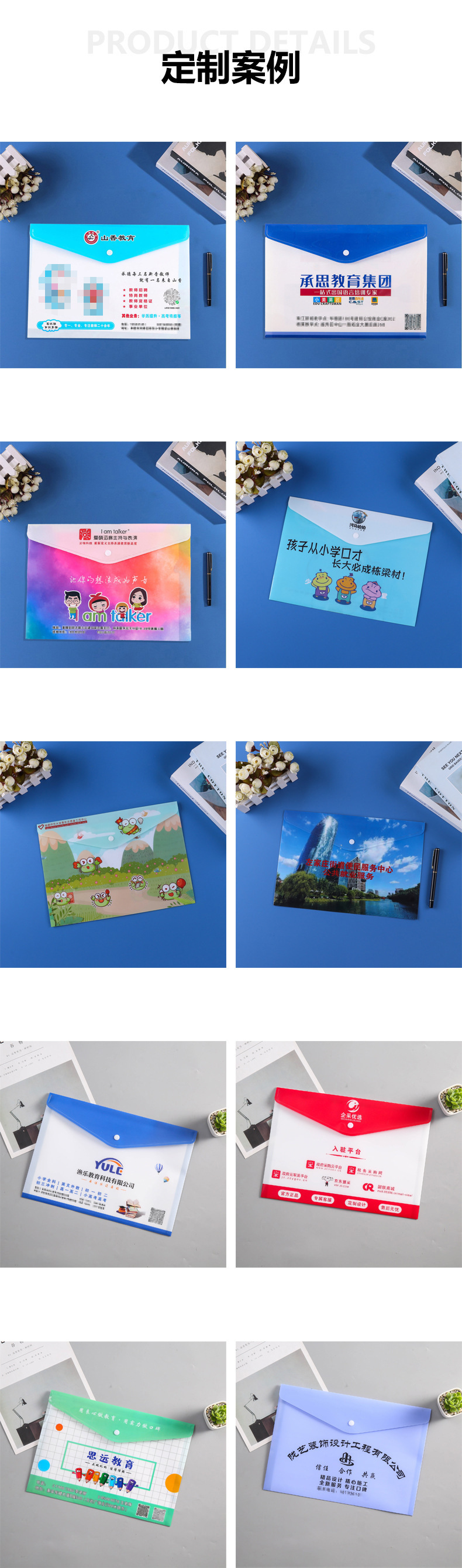 A4 스냅 투명 파일 가방 사용자 정의 PP 만화 사무실 파일 가방 데이터 저장 가방 광고 로고 폴더