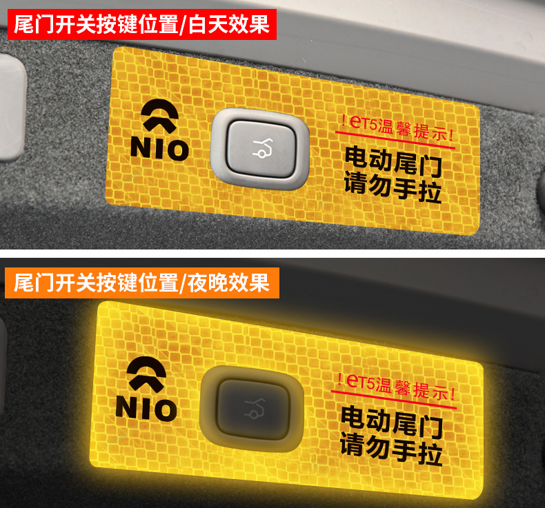 22 Weilai ET5 도어 반사 경고 스티커 트렁크 전기 뒷문 경고 스티커 스위치 경고 스티커스토어 가기